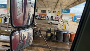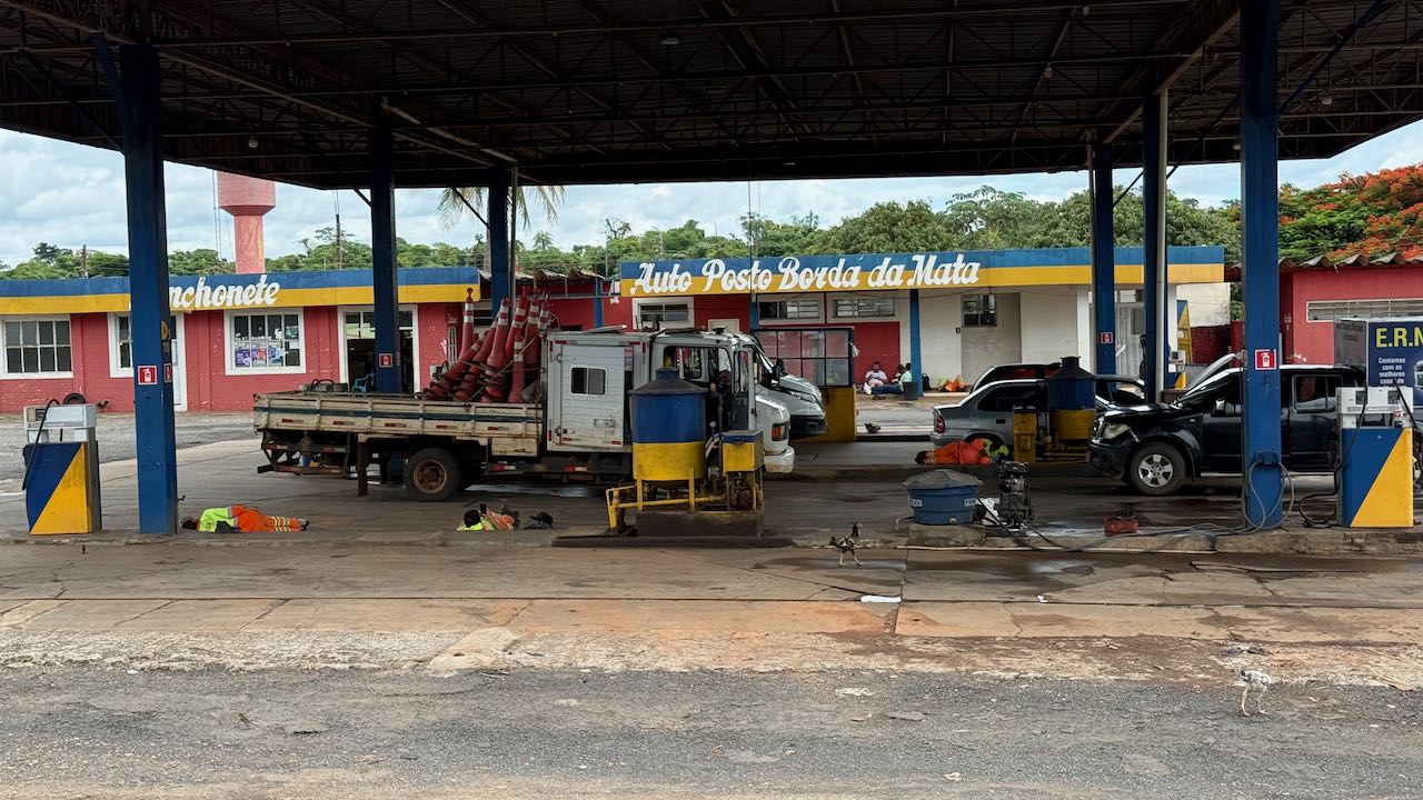 Dann sichtet Martin eine Tanke auf der Gegenseite, wir wenden beim nächsten Retorno, Feierabend! Endlich!