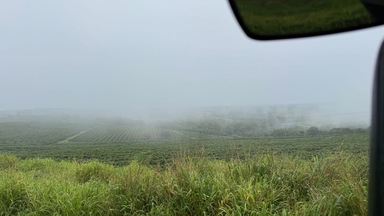 Ab 700 Metern über dem Meeresspiegel Kaffeeplantagen, eingehüllt in Nebelschwaden