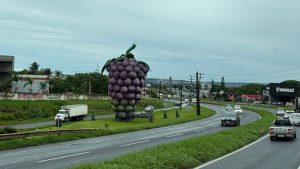 Was macht diese Riesenweintraube hier? Weit und breit sehen wir keine Rebstöcke….