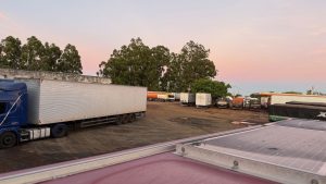Und Top Timing! Keine fünfzehn Minuten später ist hier der letzte Parkplatz von Lkws besetzt, da haben wir total Glück gehabt!