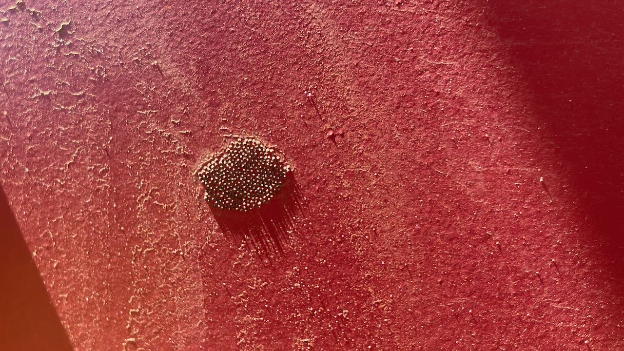 Eine heftet in Sekundenschnelle ihre Eier auf die Rappelkiste.