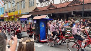 Zum Festplatz nehmen wir ein Uber, Nestor fährt uns und testet seine Englischkentnisse. Er lernt es seit einiger Zeit, wir können sagen: er hat noch einen weiten Weg vor sich. Die Strassen sind total dicht, zu Fuß wären wir schneller gewesen.