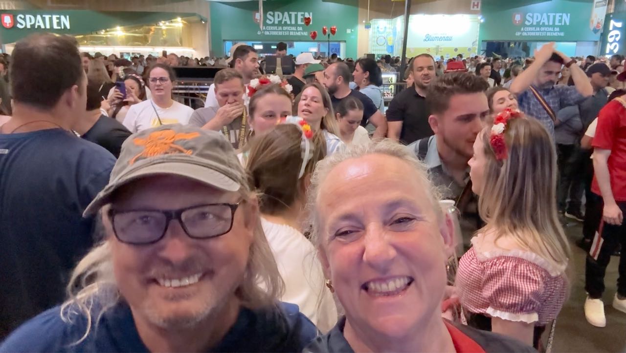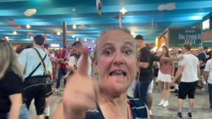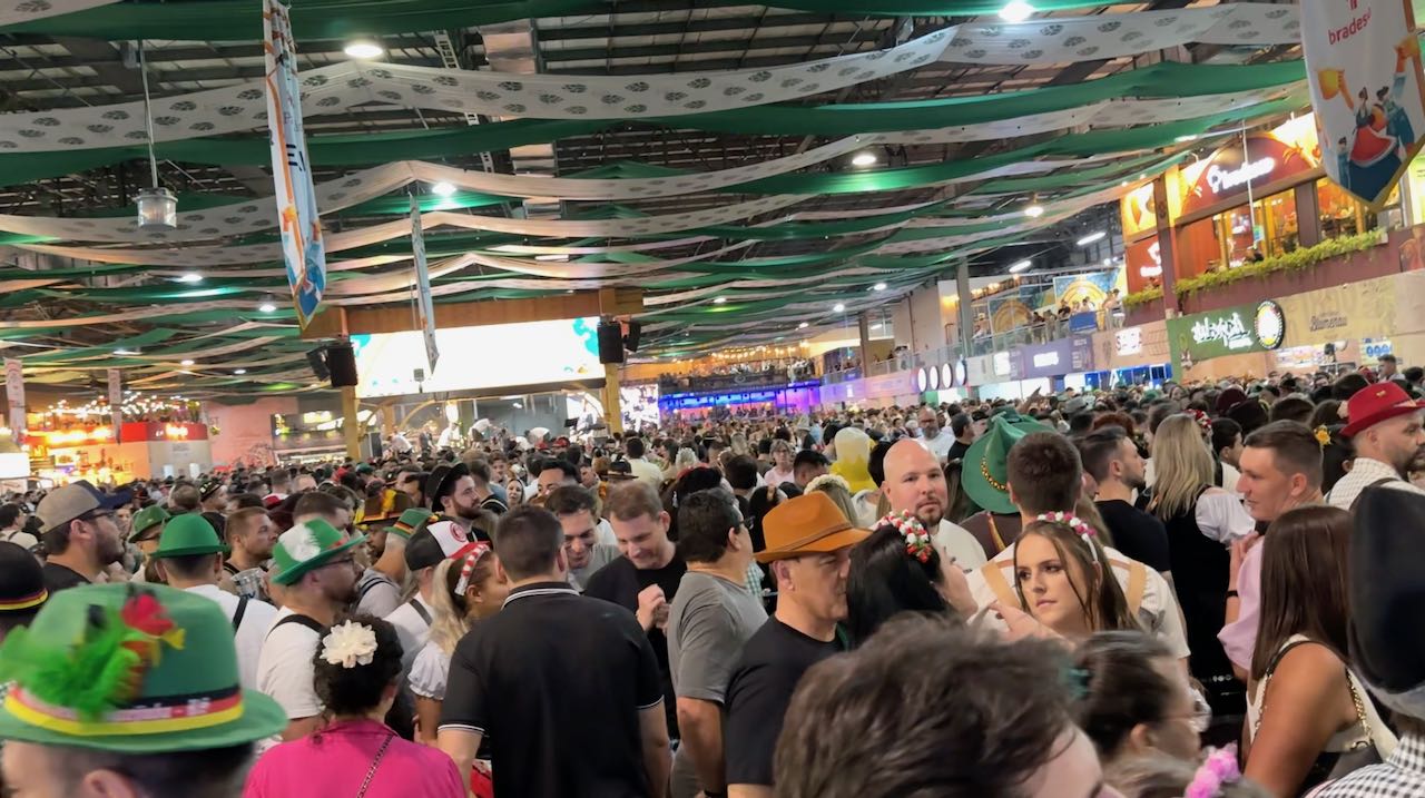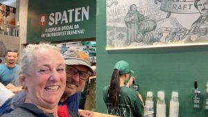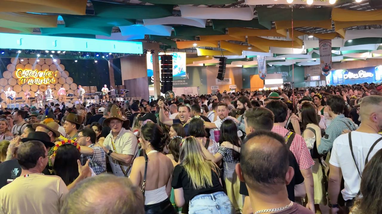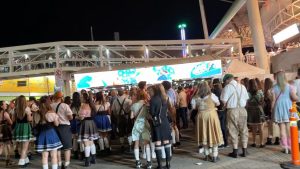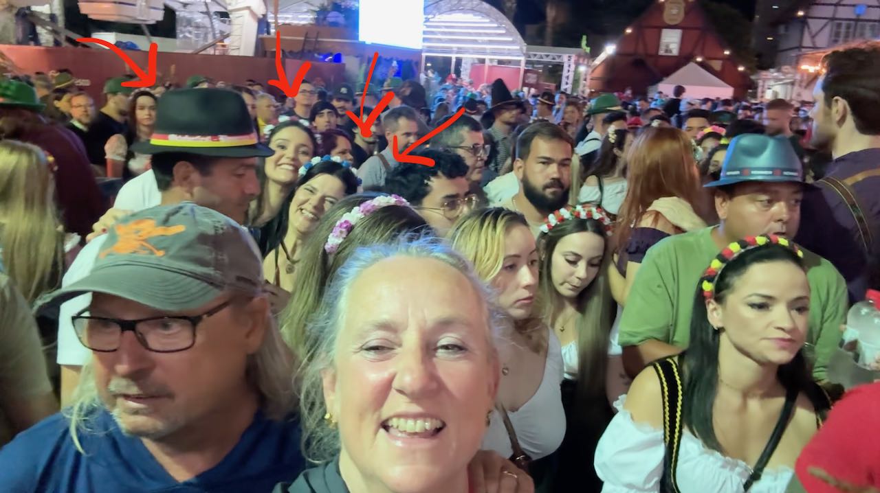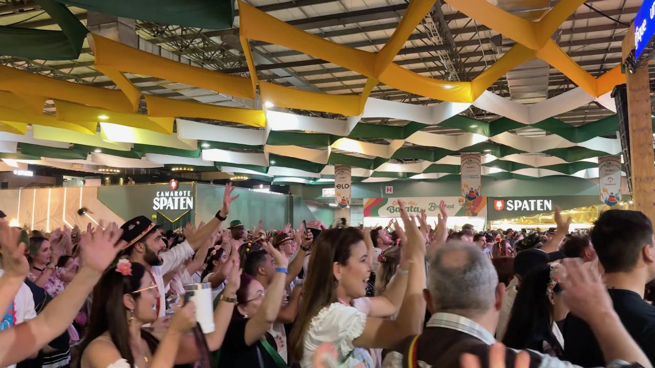 Wir stauen uns ins erste Festzelt. Hinter uns entdecken wir unsere Nachbarn vom Centro Cultural Parkplatz