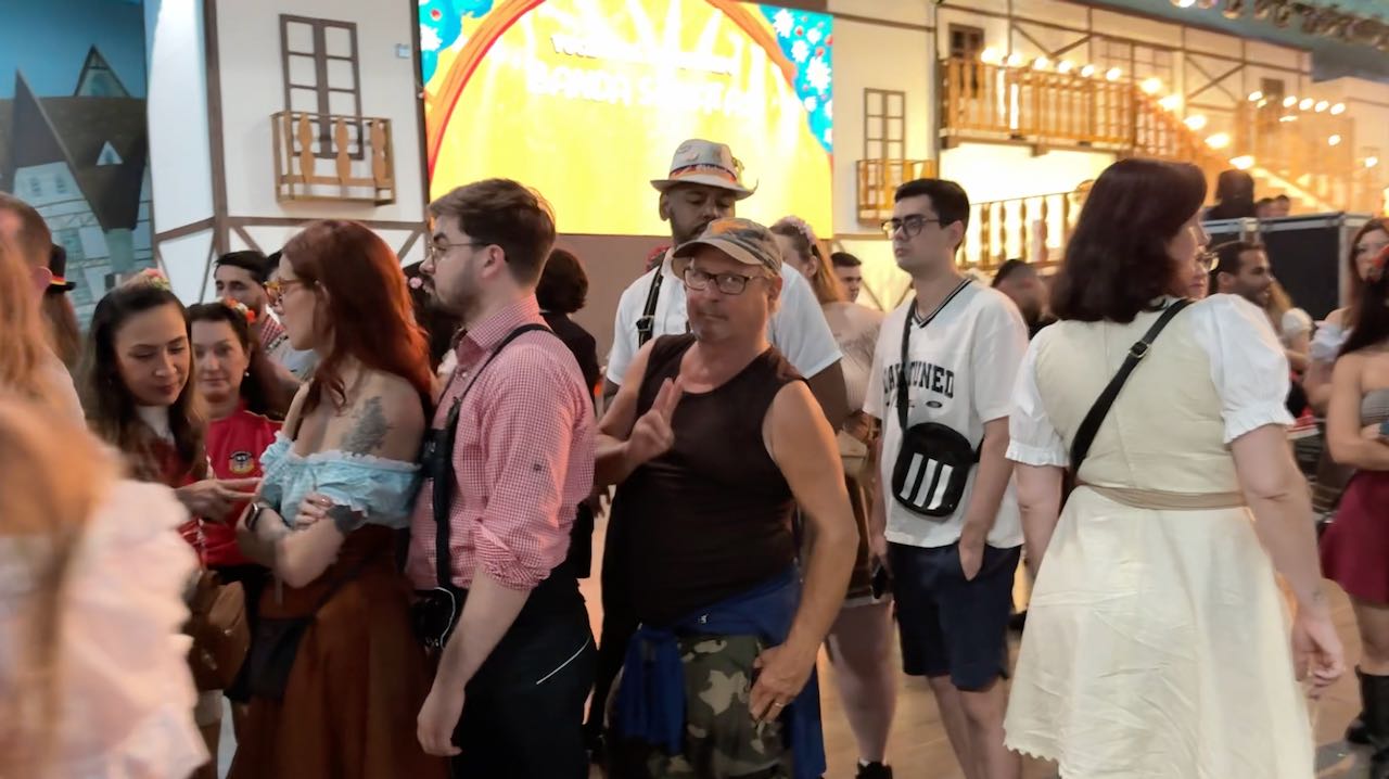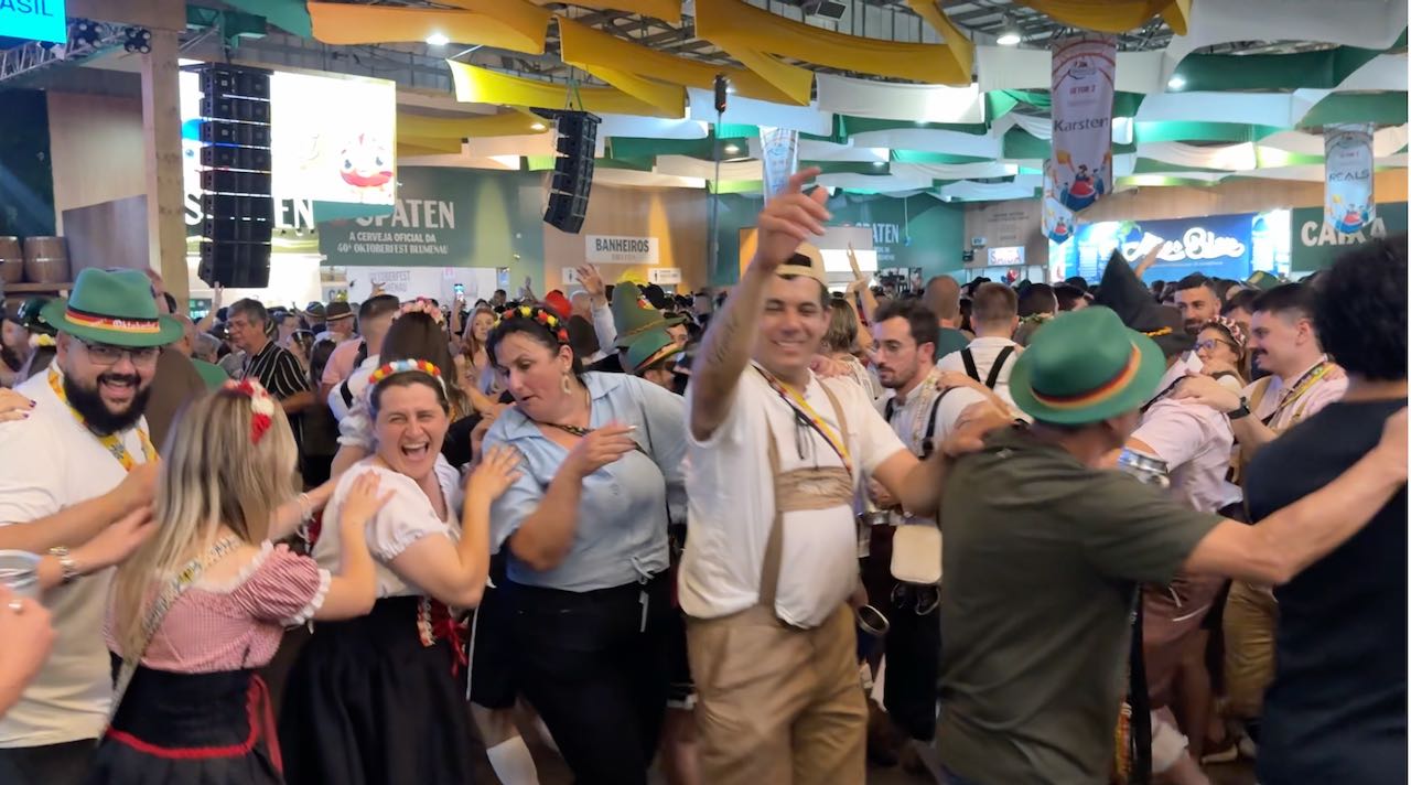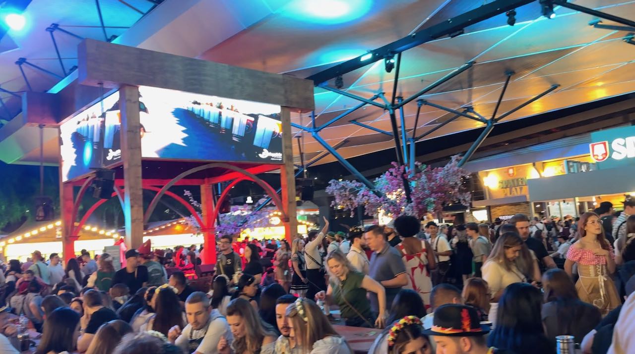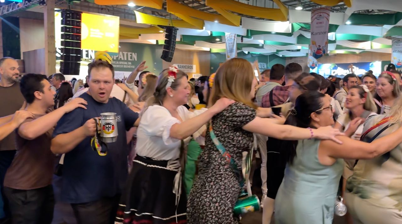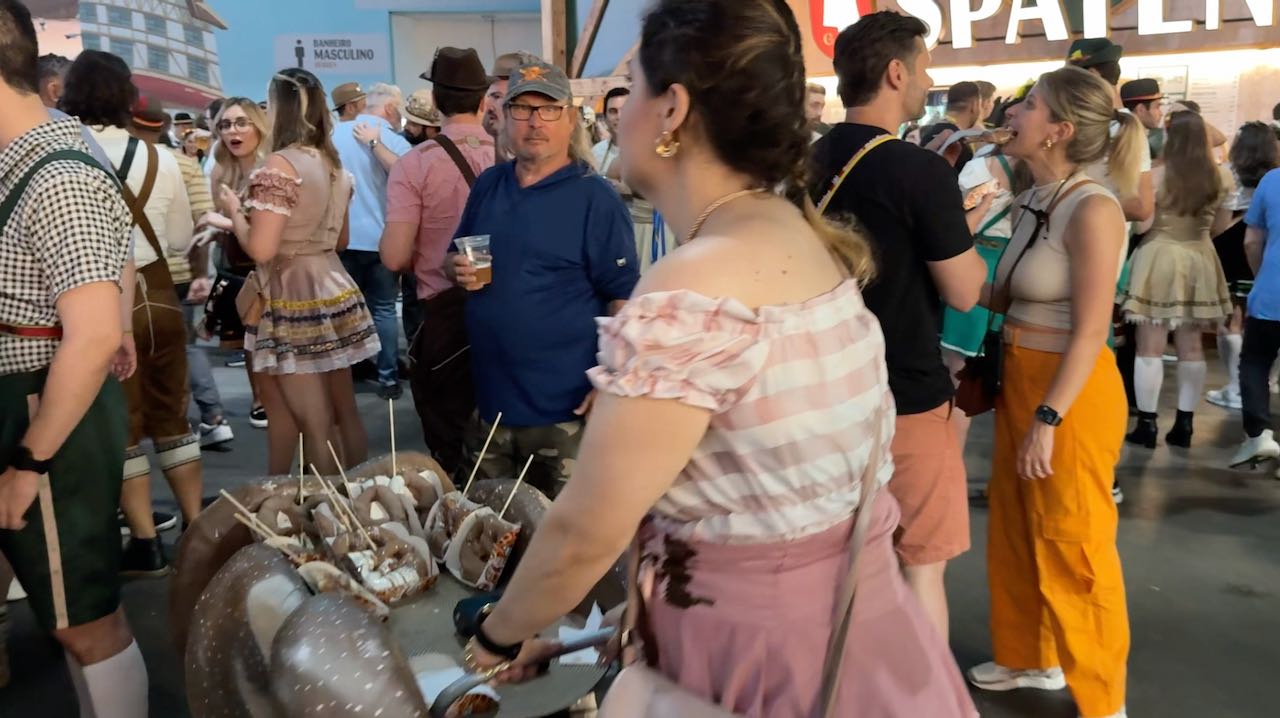 Wir stauen uns ins erste Festzelt. Hinter uns entdecken wir unsere Nachbarn vom Centro Cultural Parkplatz