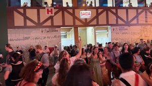 Plötzlich startet eine Polonaise, die sofort hunderte von Leuten mitzieht, Massenpolonaise durch den Saal, genial!
