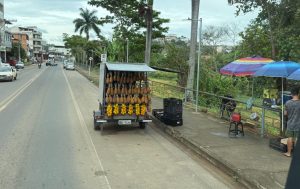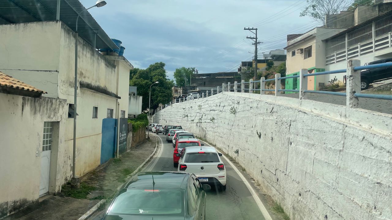 In Itaperuna bleiben wir im Stau stecken. 38,5°C, hohe Luftfeuchtigkeit, kein Fahrtwind mehr, wir zerfliessen…..