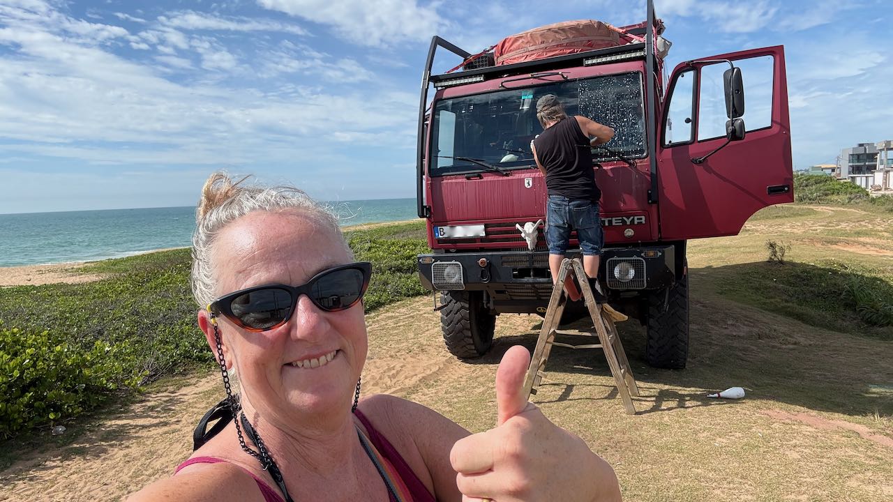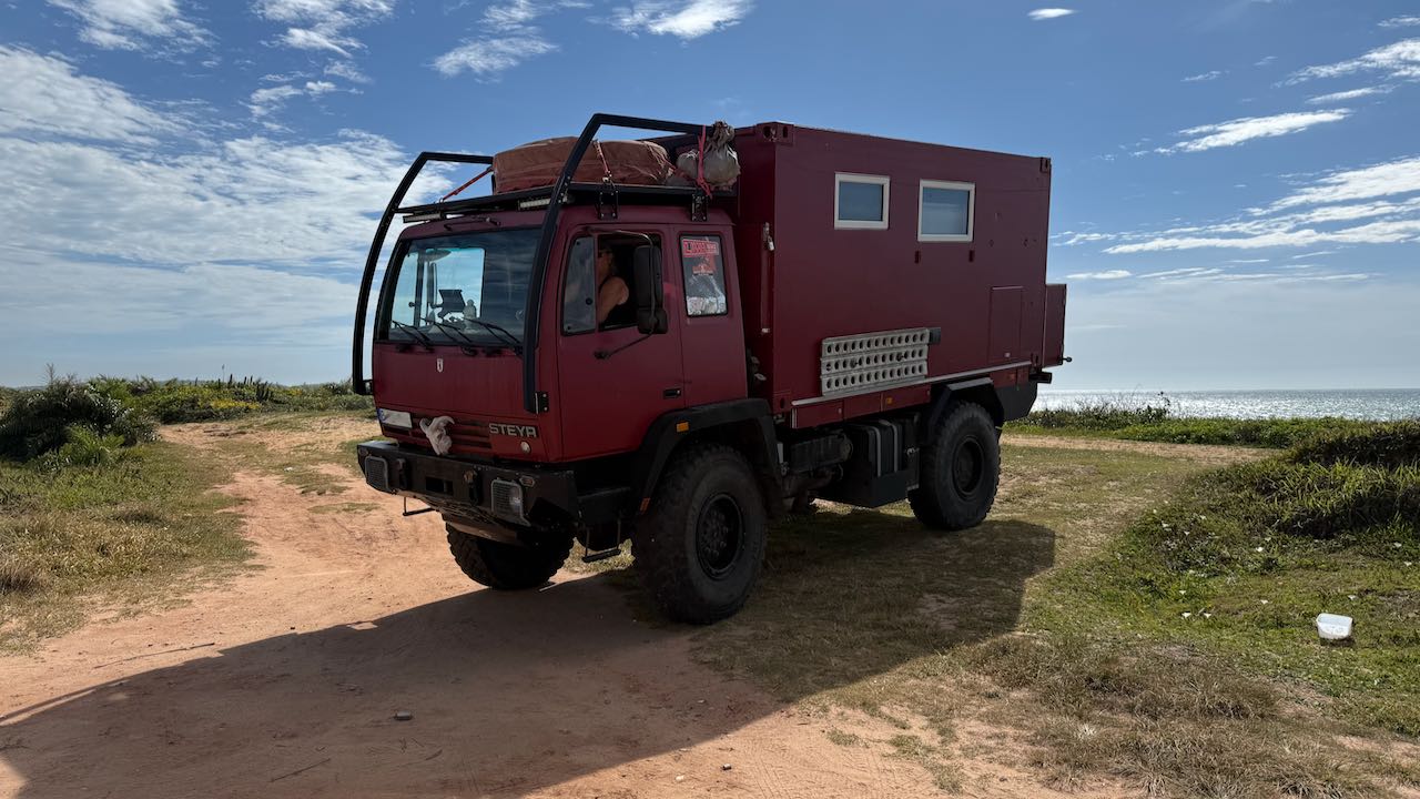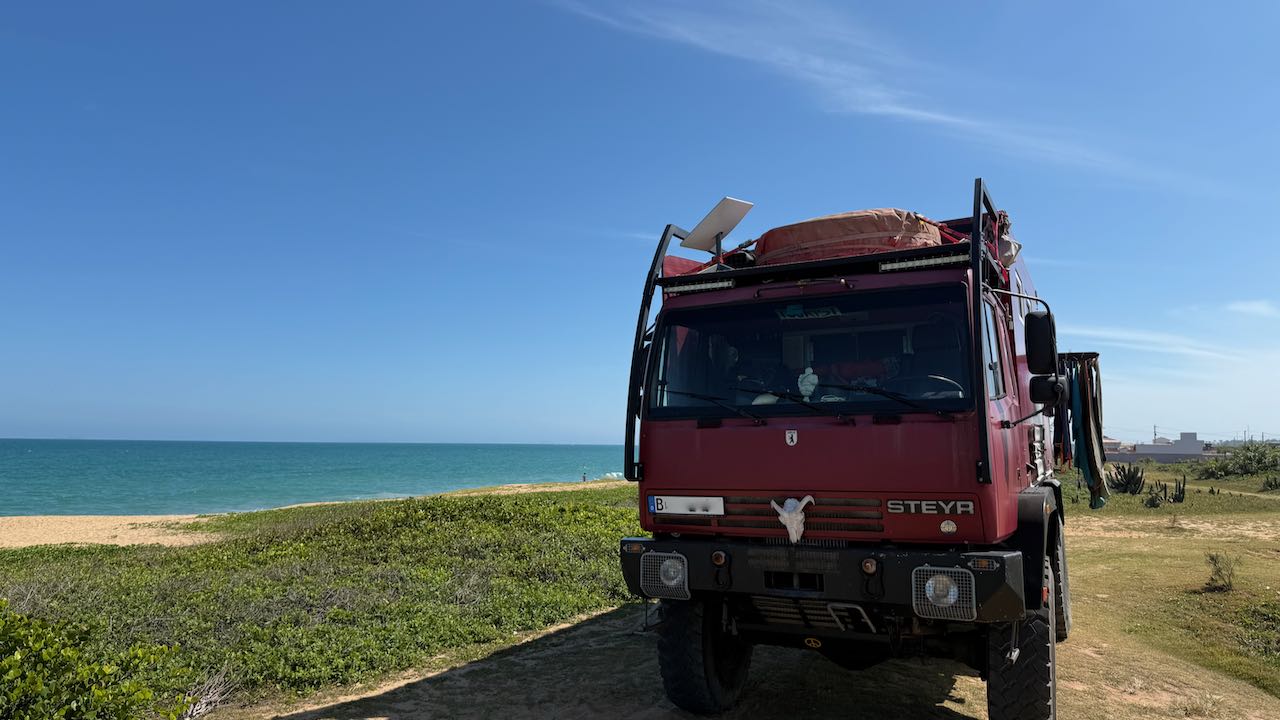 Alles erledigt, wir machen die Platzsuche heute kurz. Nur ein paar Kilometer raus dem Stadttrubel, der erste Platz am Strand ist unser.