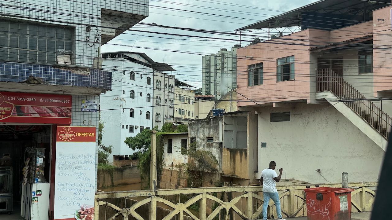 der Rio Piranga schiebt sich müde als eine braune, träge Brühe voran. Besonders auffällig in der Stadt: die konsequente Unattraktavitität.
