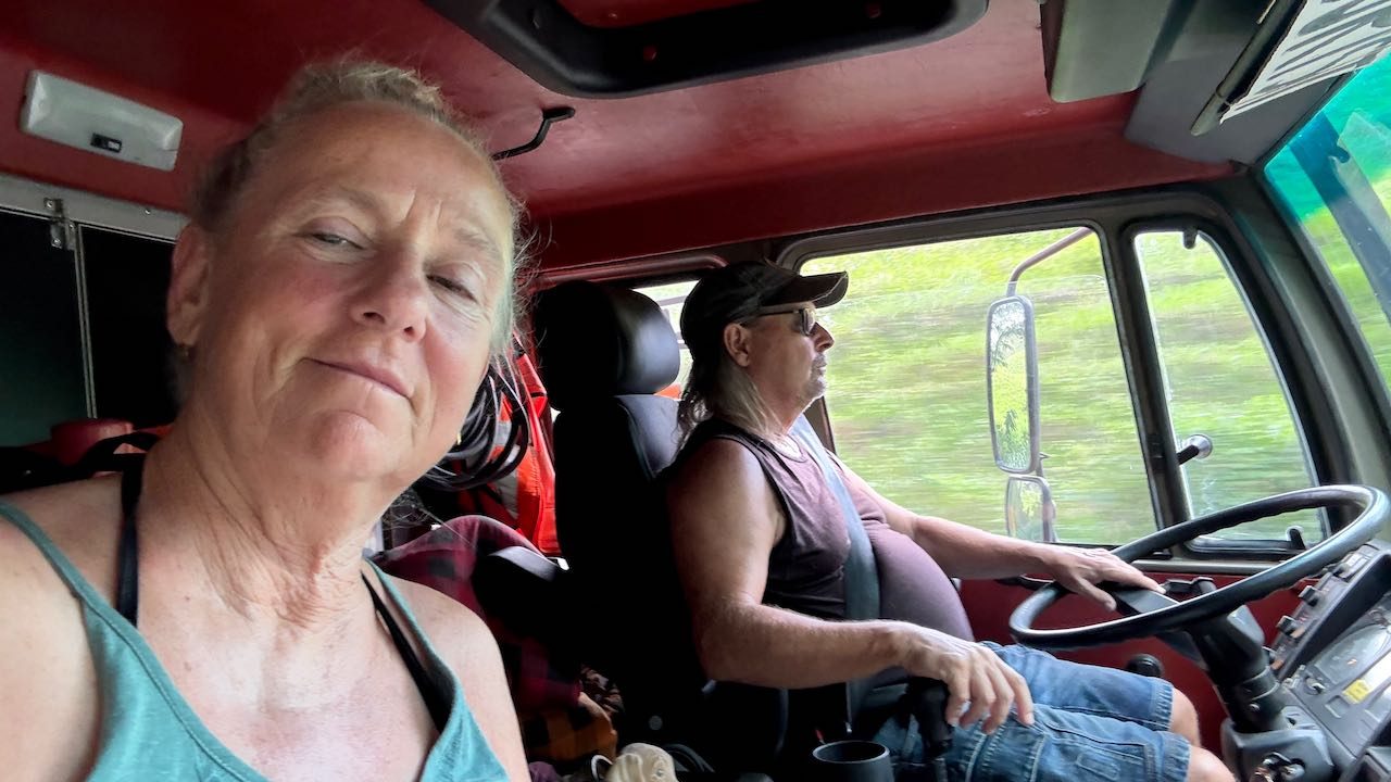 Warmer Fahrtwind, wie aus einem Föhn, bläst durch die Fenster, wir sind dankbar für jedes Lüftchen und sei es auch noch so warm.