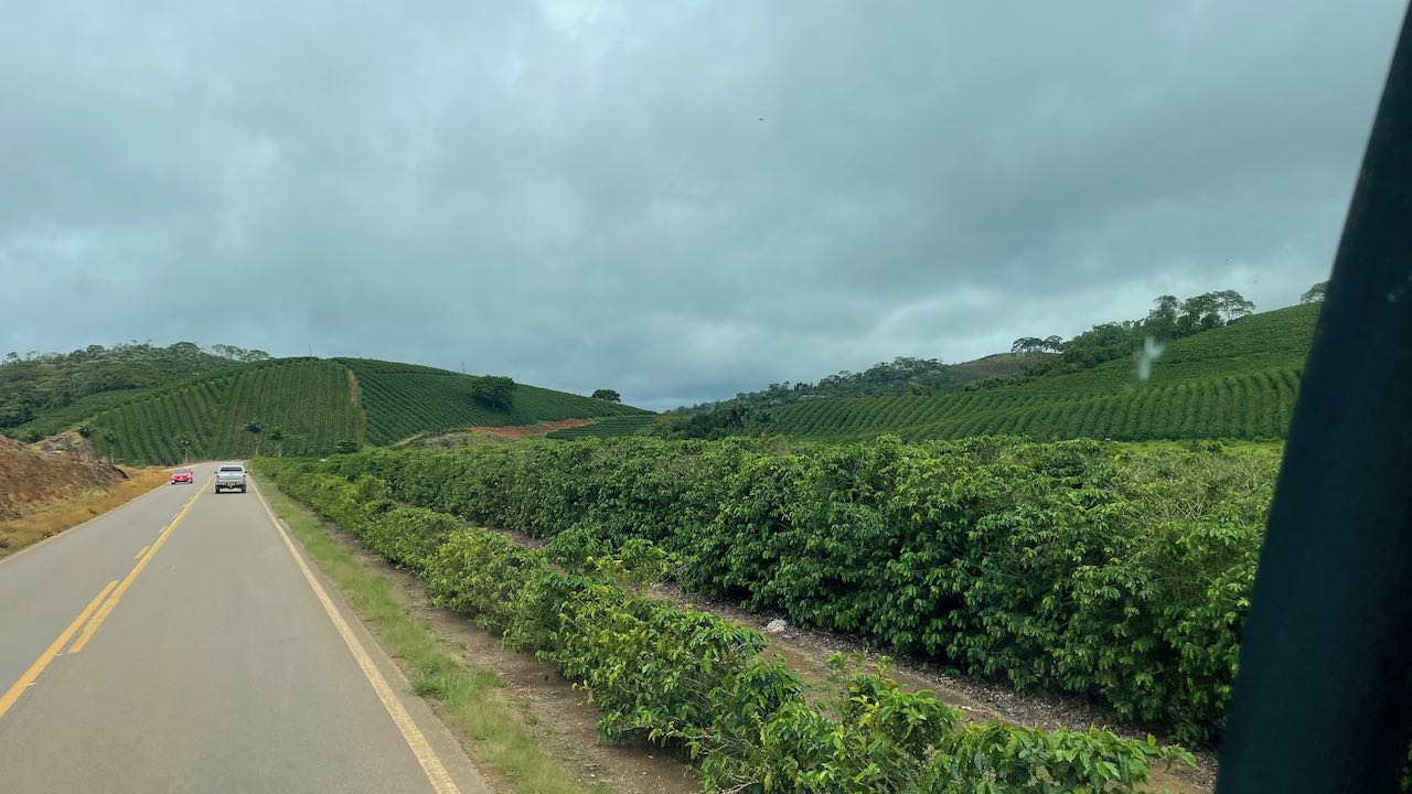 Langsam zieht die Strasse bergauf. Ab 700 Höhenmetern wird Kaffee angebaut
