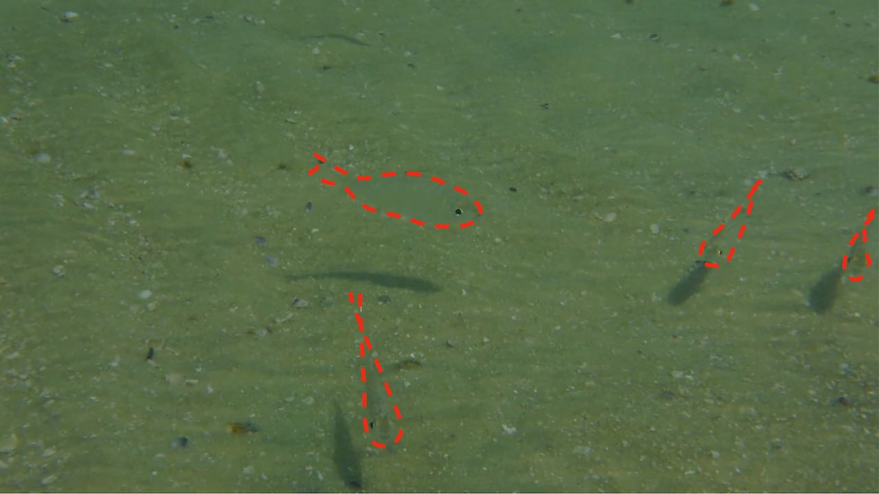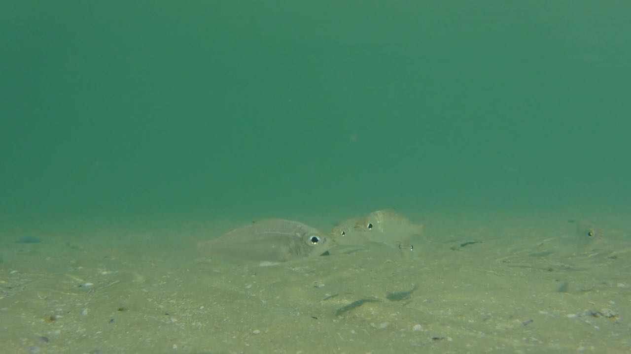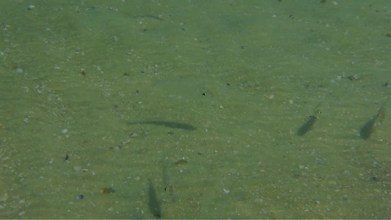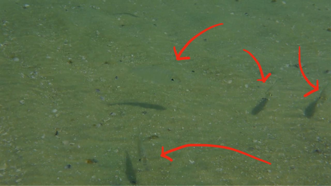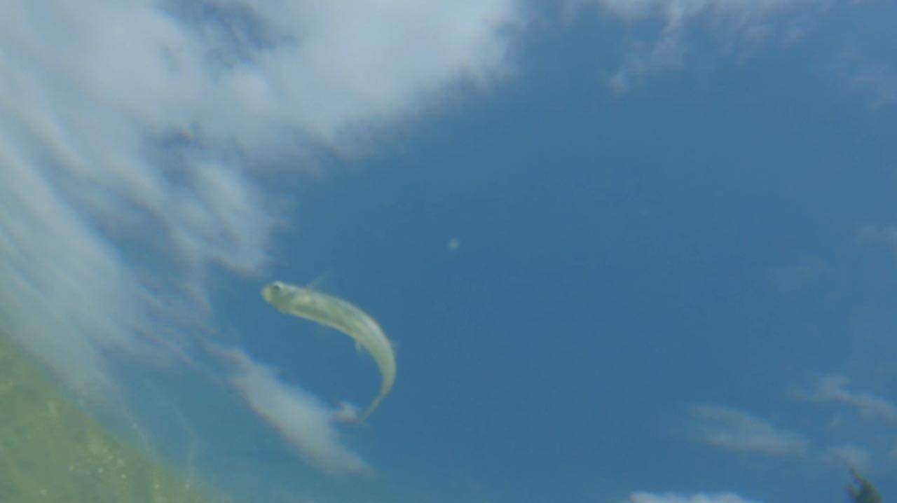 Die Unterwasserkamera macht sie sichtbar. Direkt unter der Oberfläche, lang und schmal, immer begleitet von ihrer Spiegelung. Manchmal blitzen sie kurz im Sonnenlicht auf