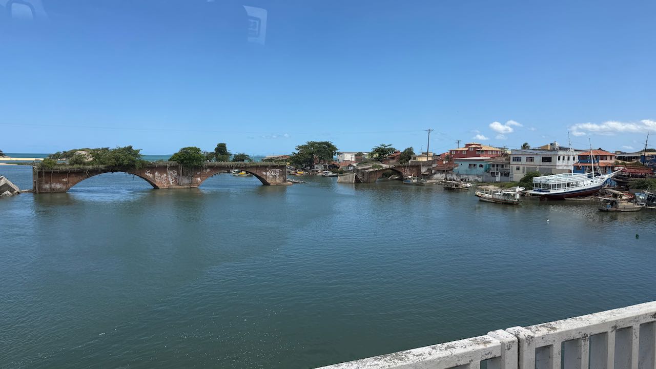 Von Unamar rollen wir über die neue Brücke nach Barra de Sao Jose. Die alte Brücke liegt in Trümmern.