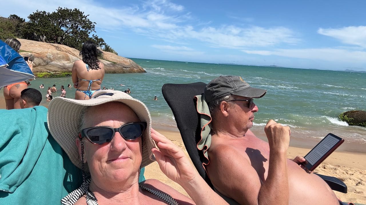 Den Rest des Tages verbringen wir bei Rappel im Schatten, einfach zu heiß für alles. Und so angetüdelt von den Caipirinhas möchten wir den Kampf mit der Merresströmung nicht wagen. Lieber dösen und lesen und plaudern…