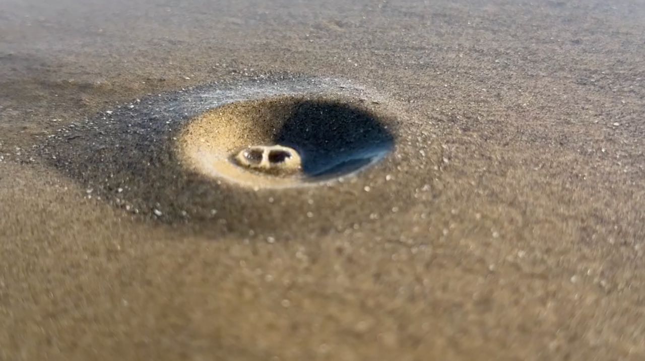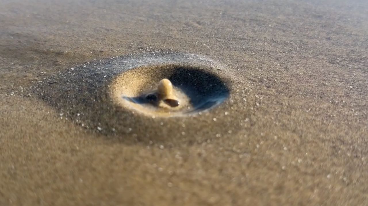 Vielleicht eine Klaffmuschel, die unterirdisch auf die Flut wartet.