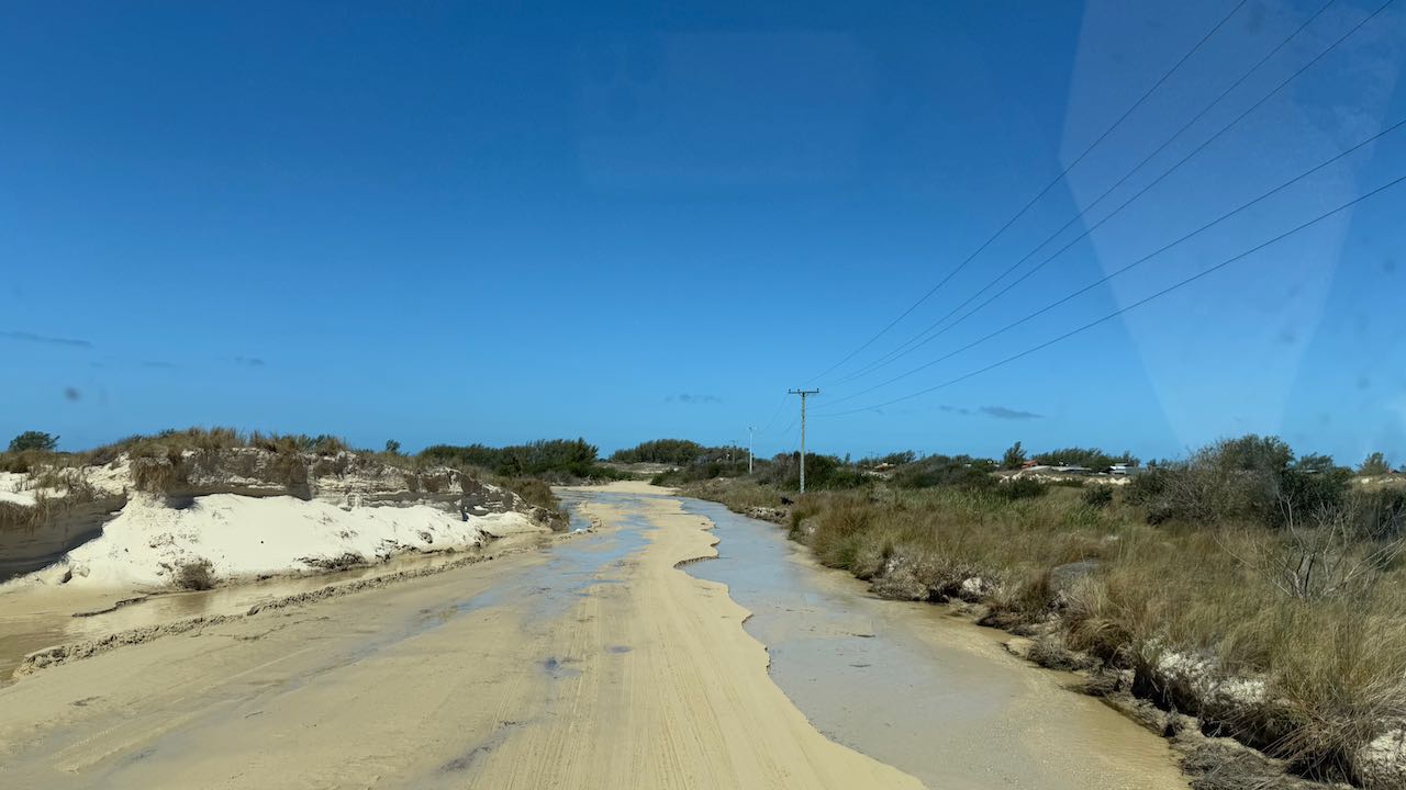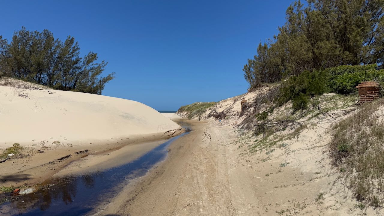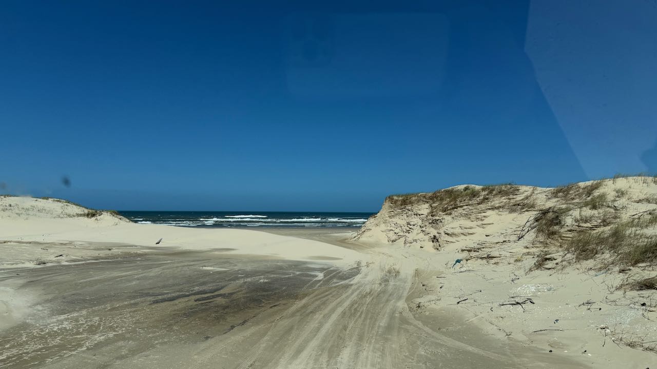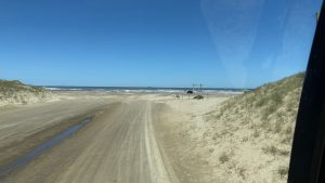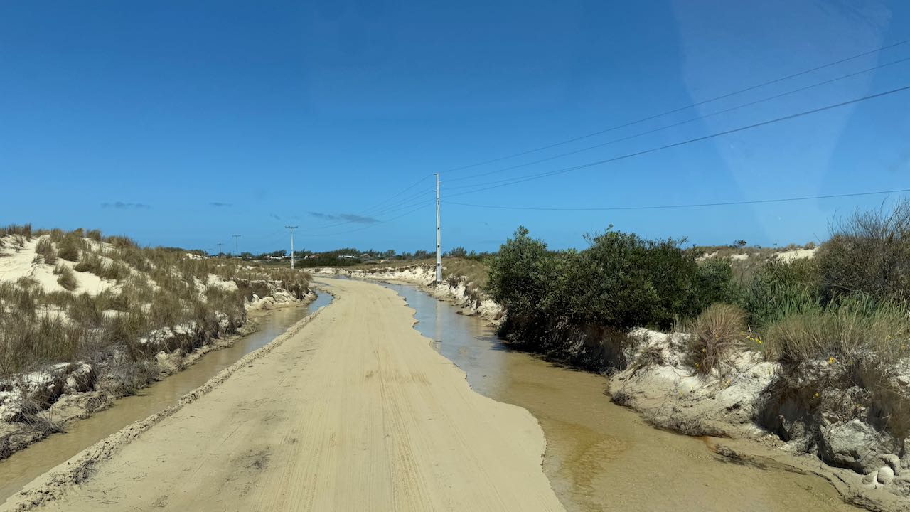 Die erste Strandzufahrt ist schmal, von einer Düne zugestellt, könnten wir machen, muss aber nicht unbedingt sein.