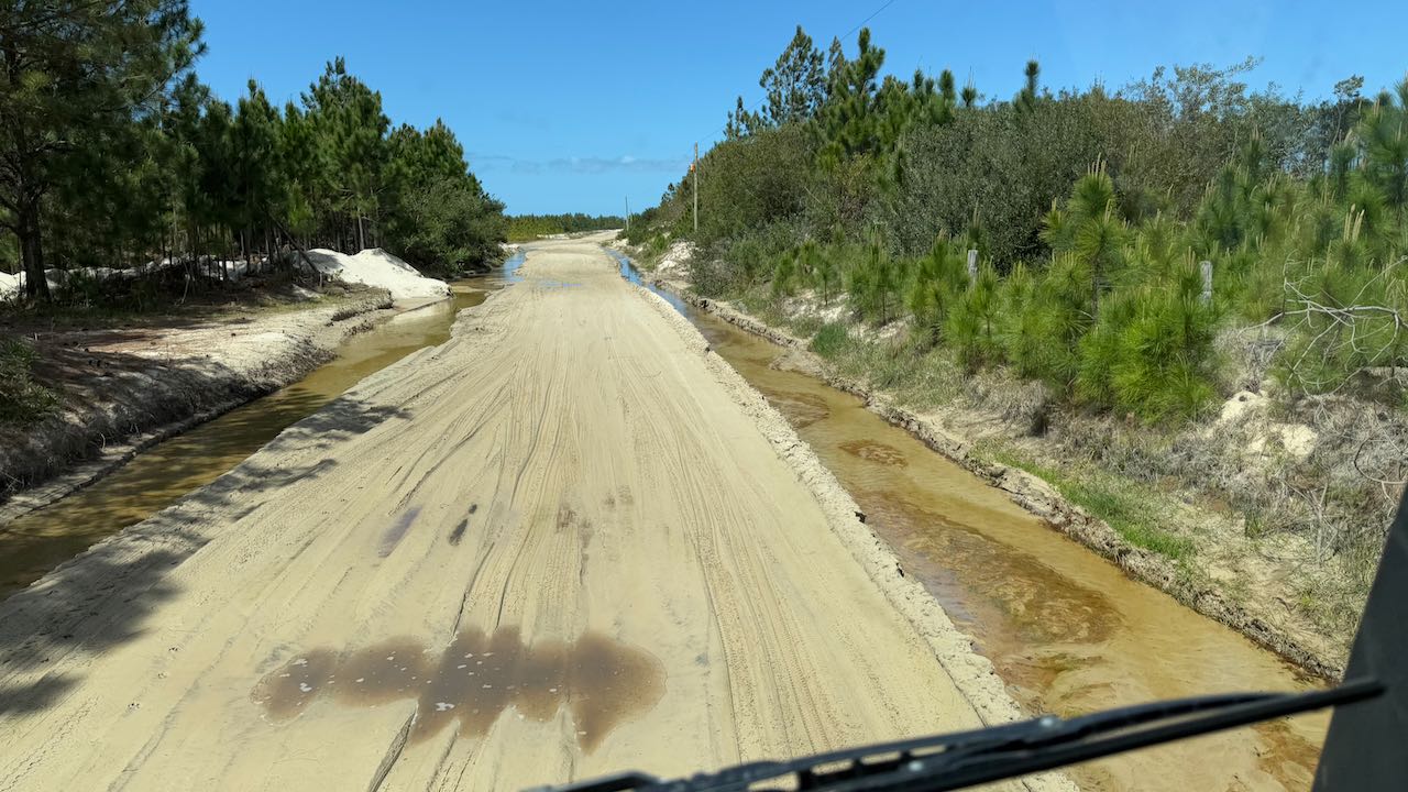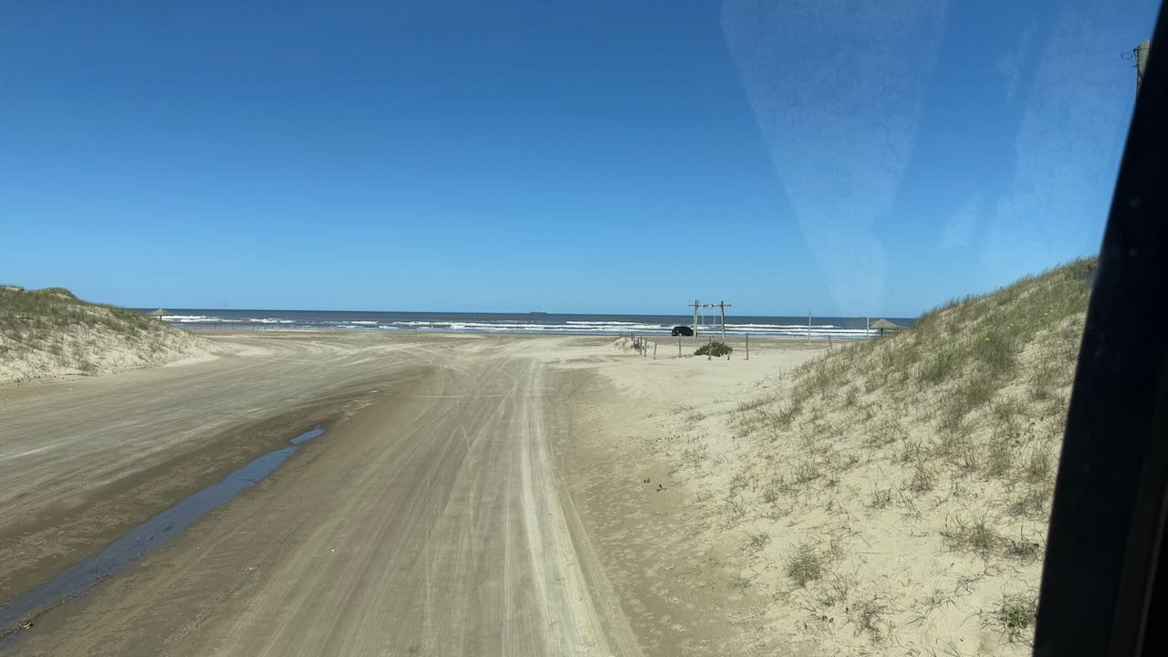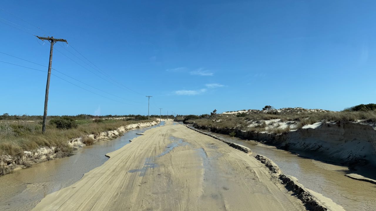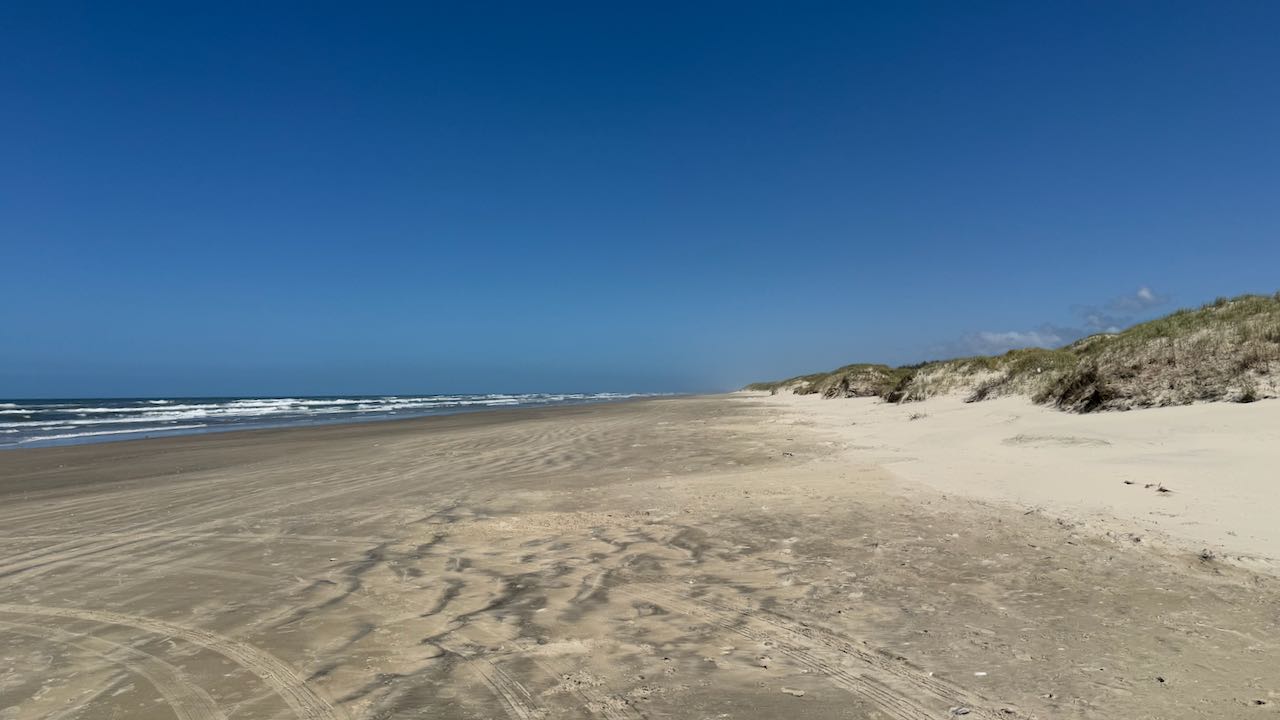 Die erste Strandzufahrt ist schmal, von einer Düne zugestellt, könnten wir machen, muss aber nicht unbedingt sein.
