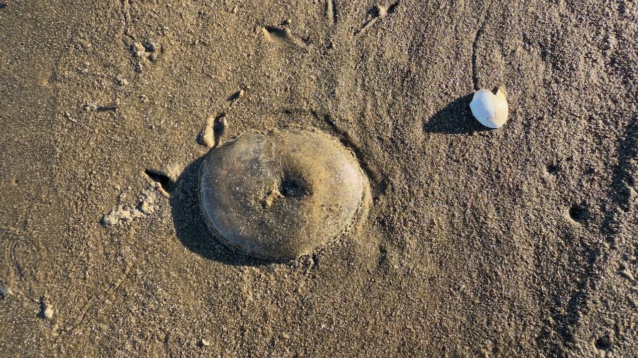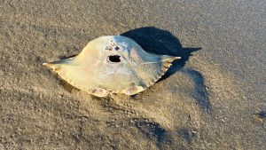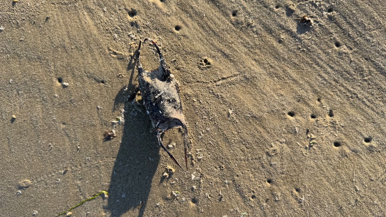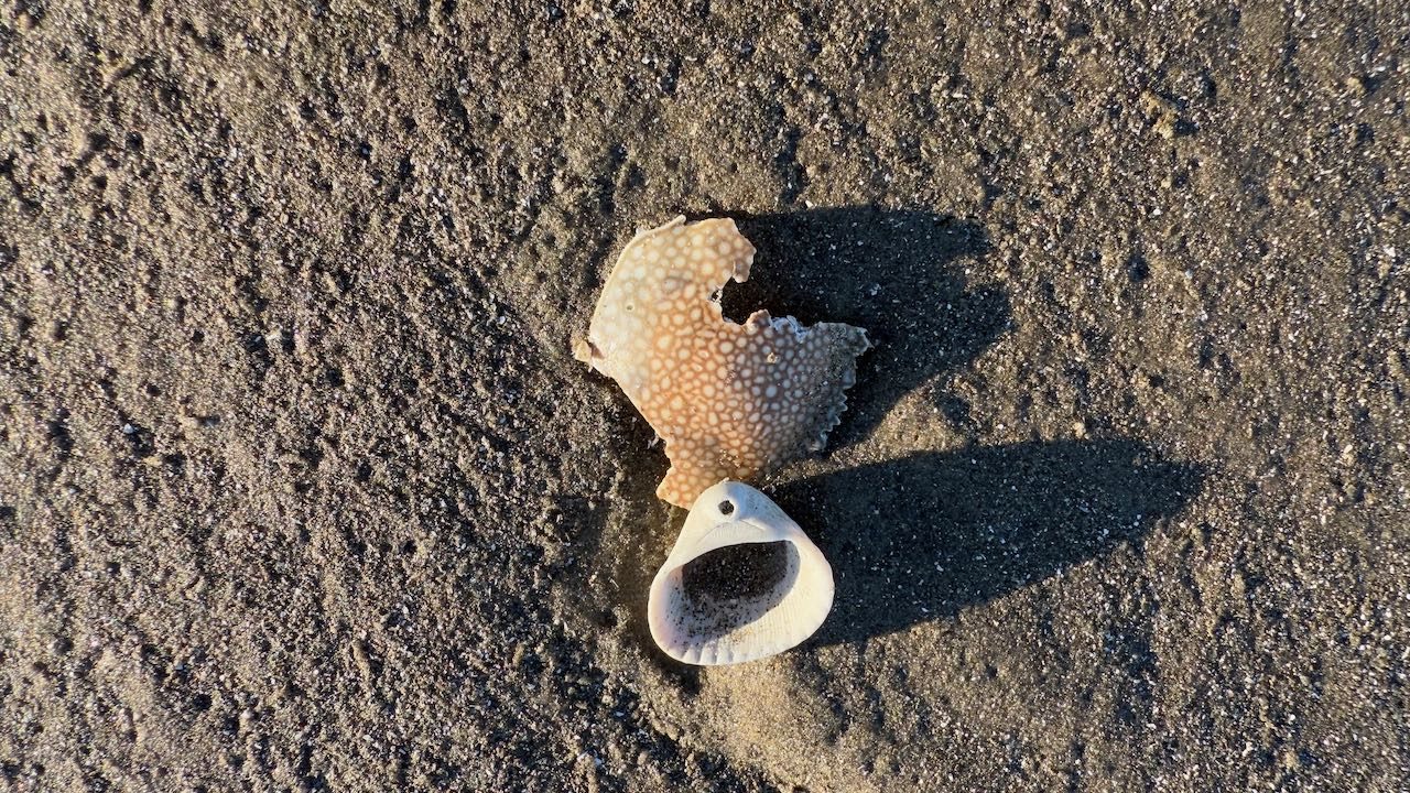 Das Krebsgehäuse sieht aus wie ein kleines Gespenst..