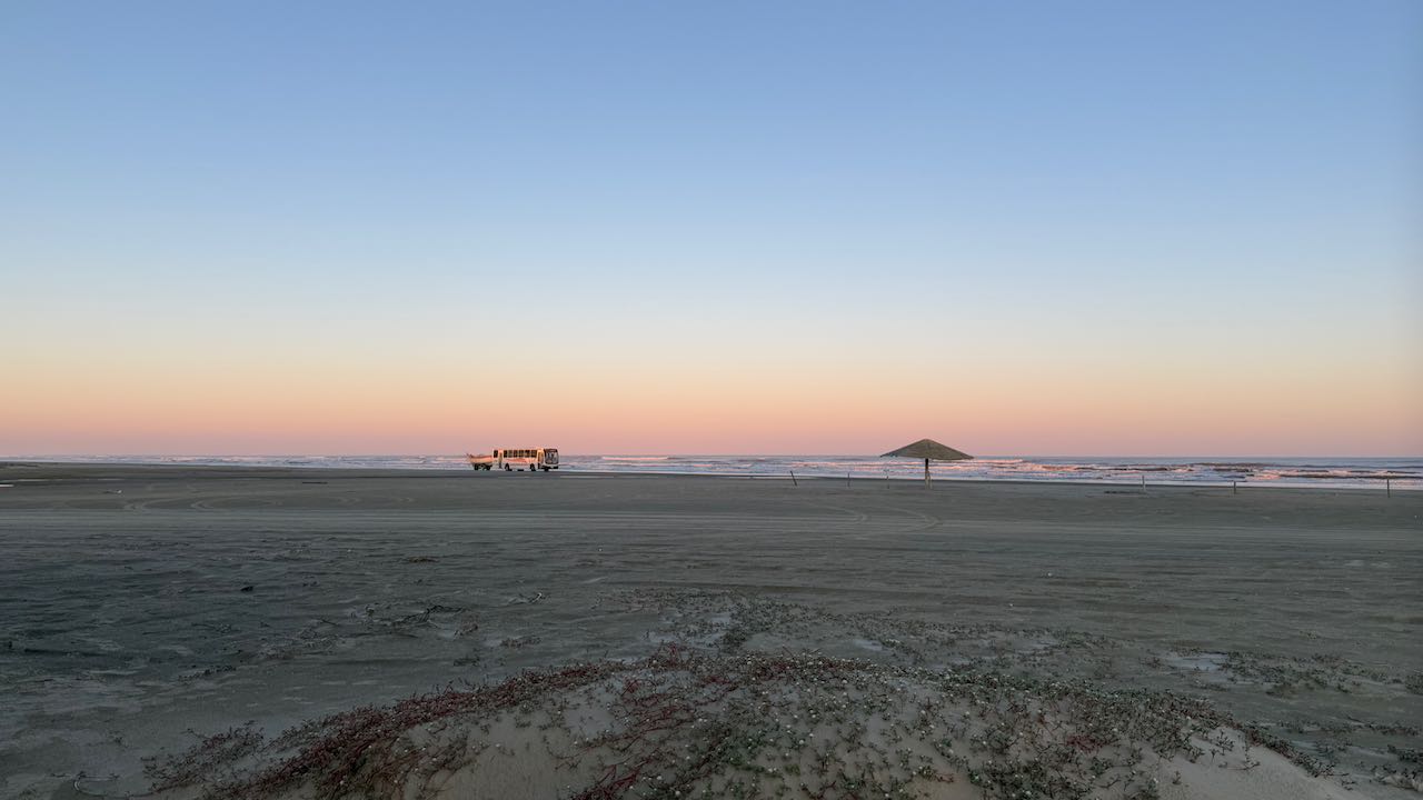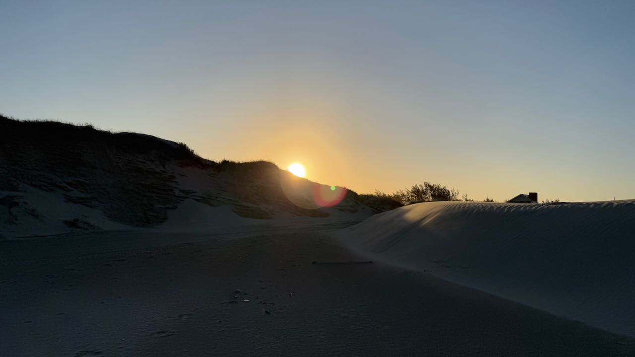 Um Punkt 18 Uhr verschwindet die Sonne hinter den Dünen, es wird sofort kühl