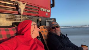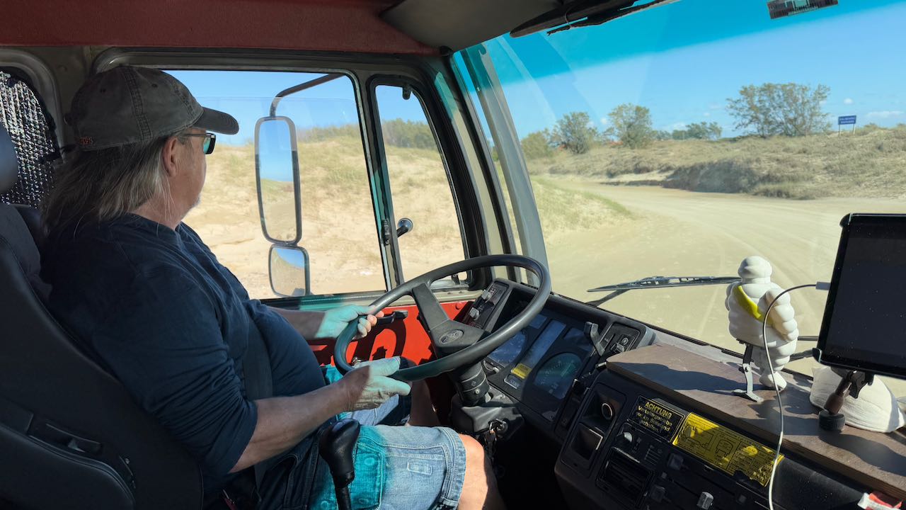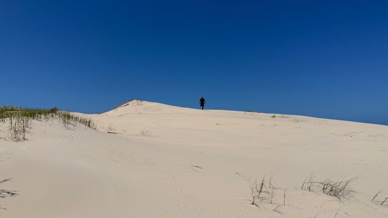 Die nächste Zufahrt ist komplett zugesandet, wir erklimmen eine Düne für den besseren Überblick