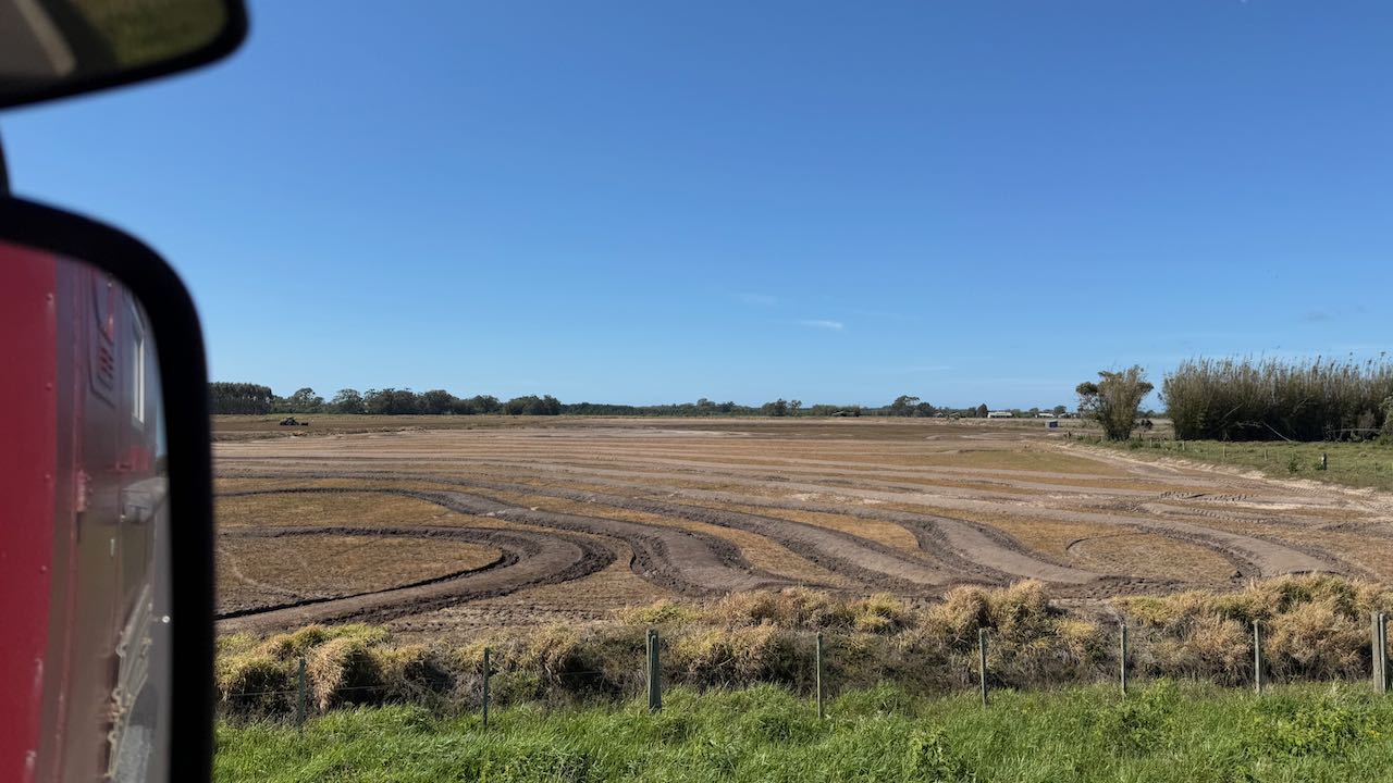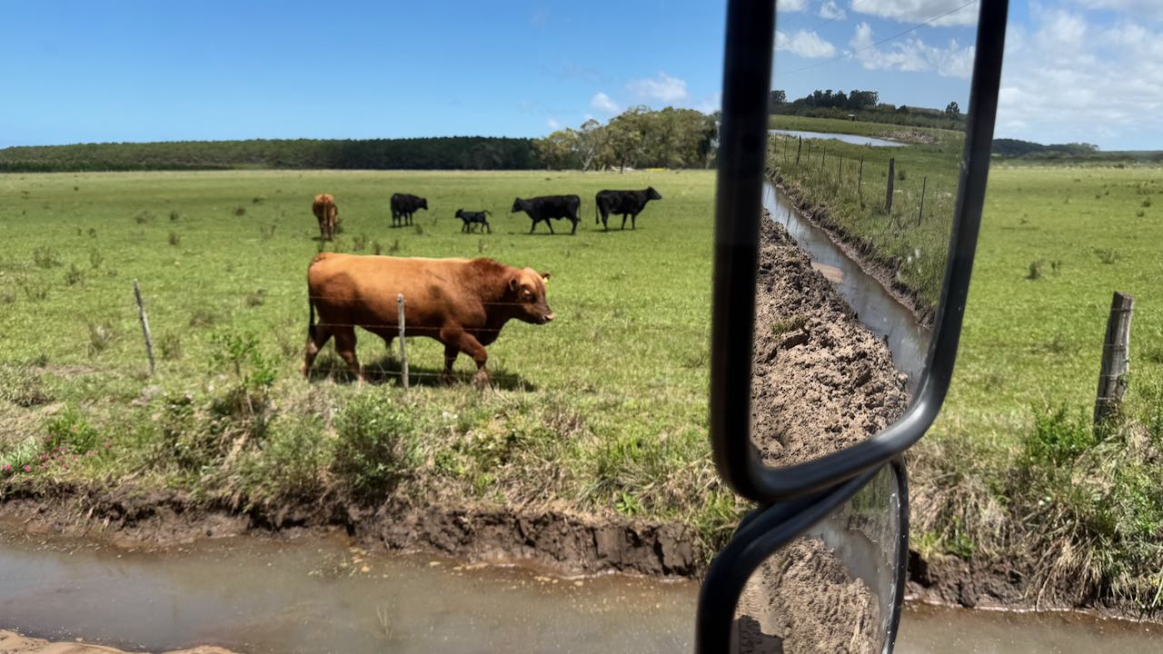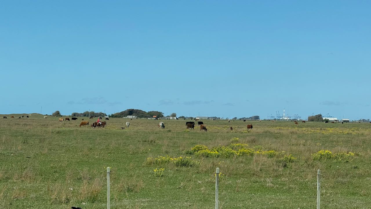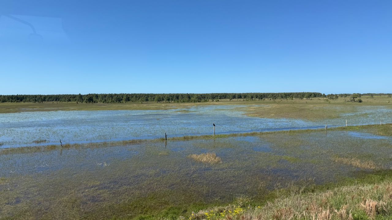 Rechts das Meer. Die Wiesen versinken im Wasser, die Tiere stört es nicht.