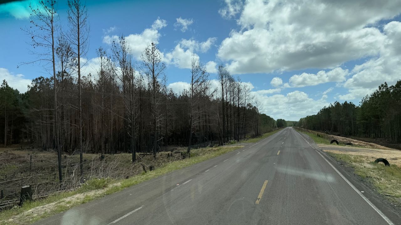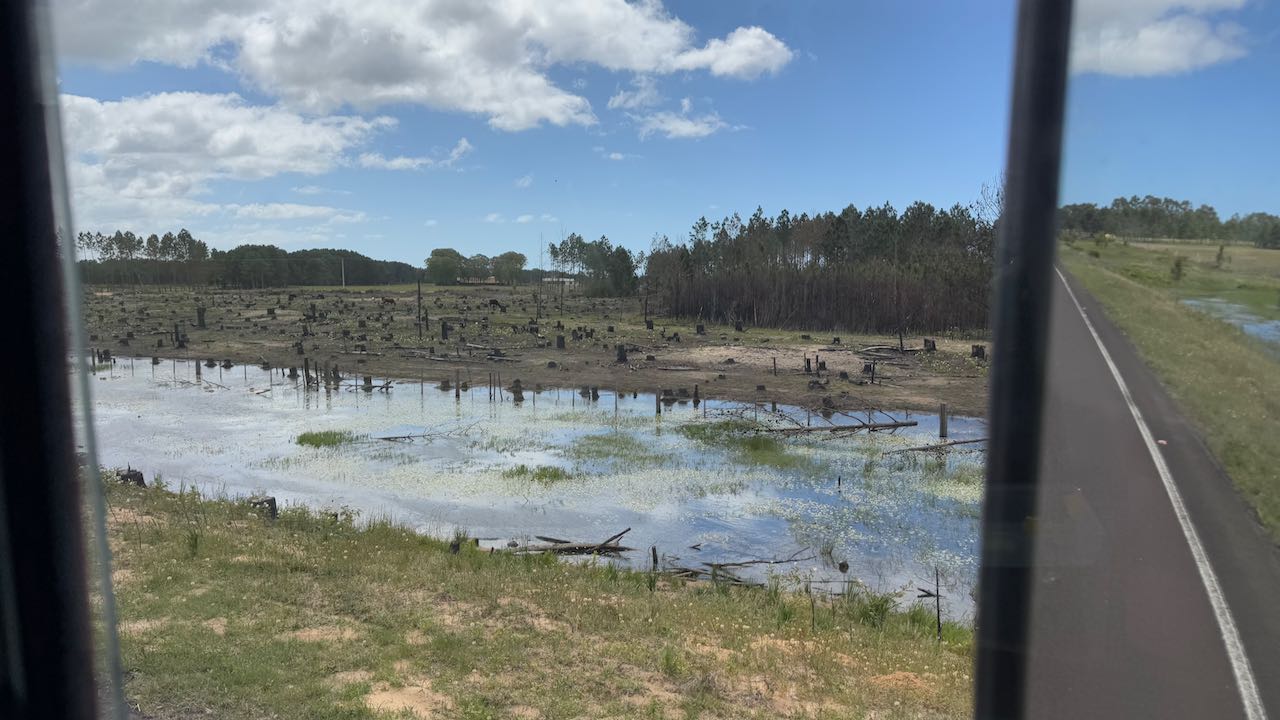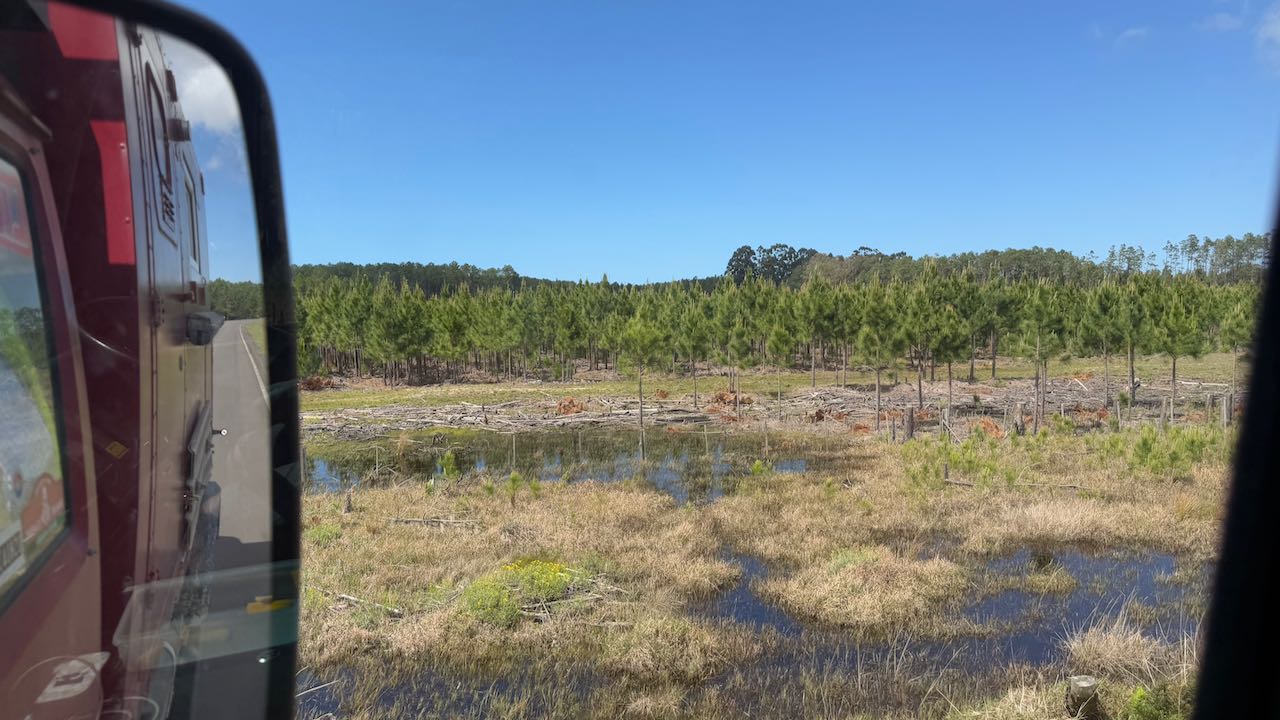 Wir durchqueren Wälder, sehen große Holzschlagplätze und Aufforstung