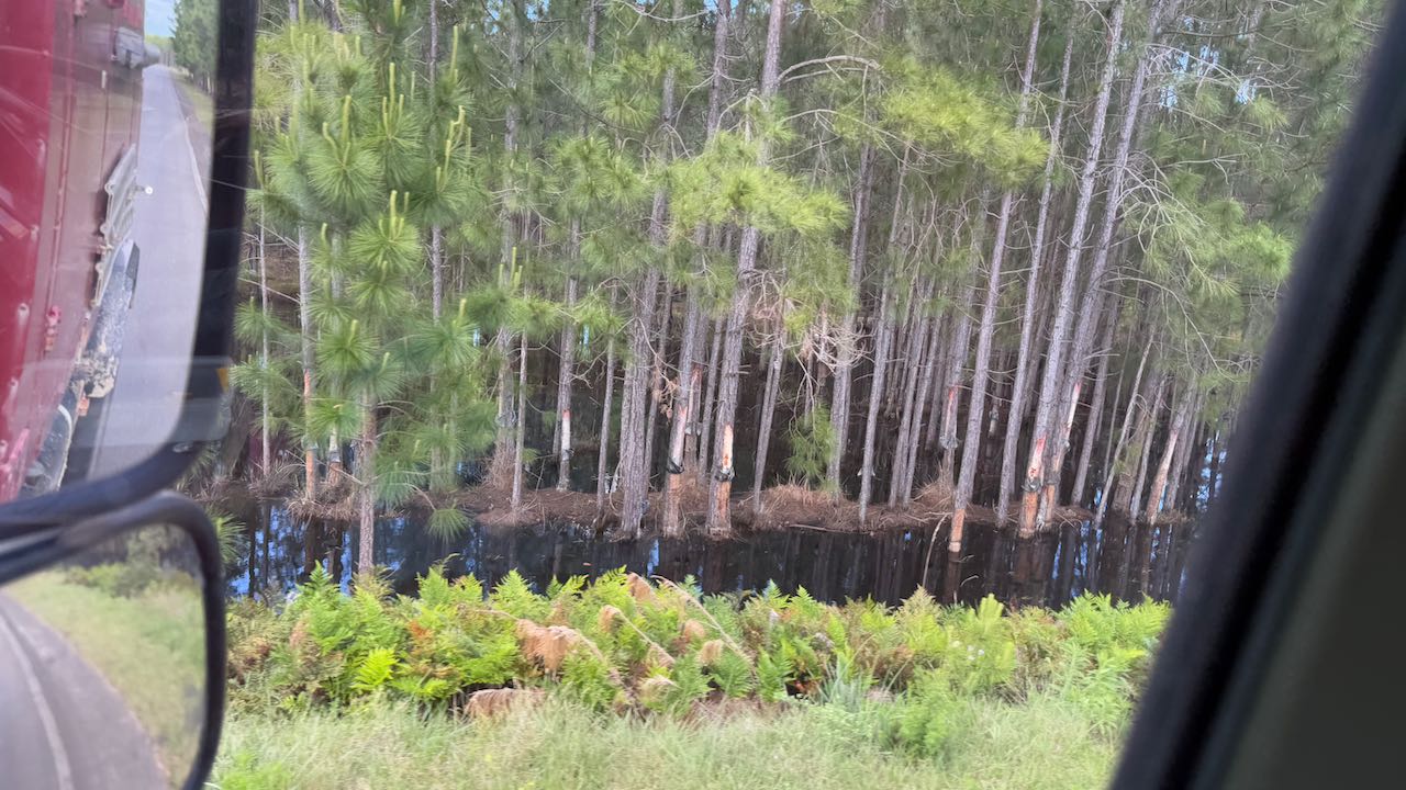 Ponderosa Kiefern stehen im Wasser, alle angezapft zur Harzgewinnung.