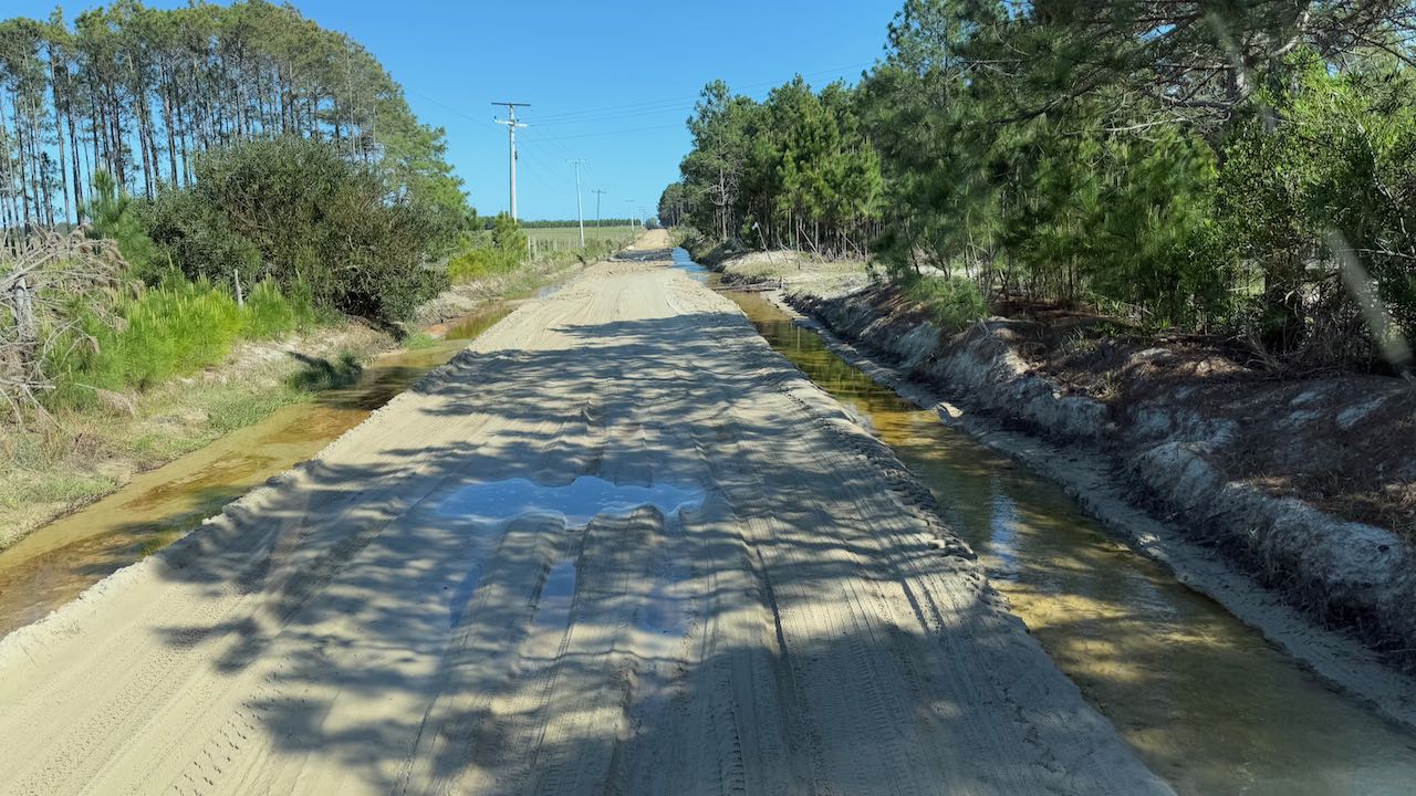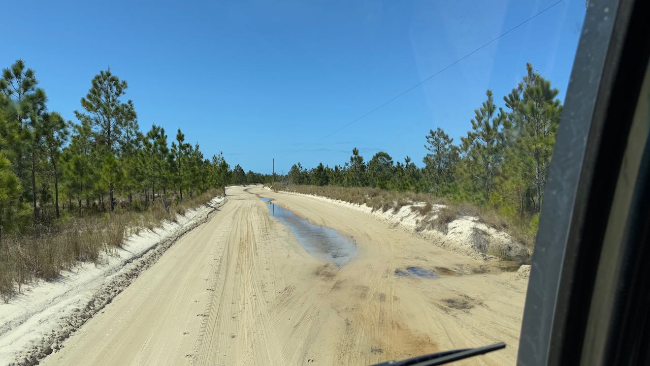 Überraschend landen wir auf einer weichsandigen, schmalen Piste.