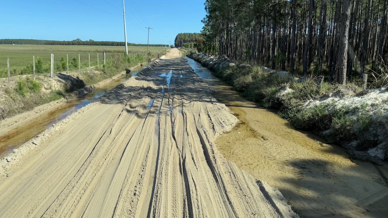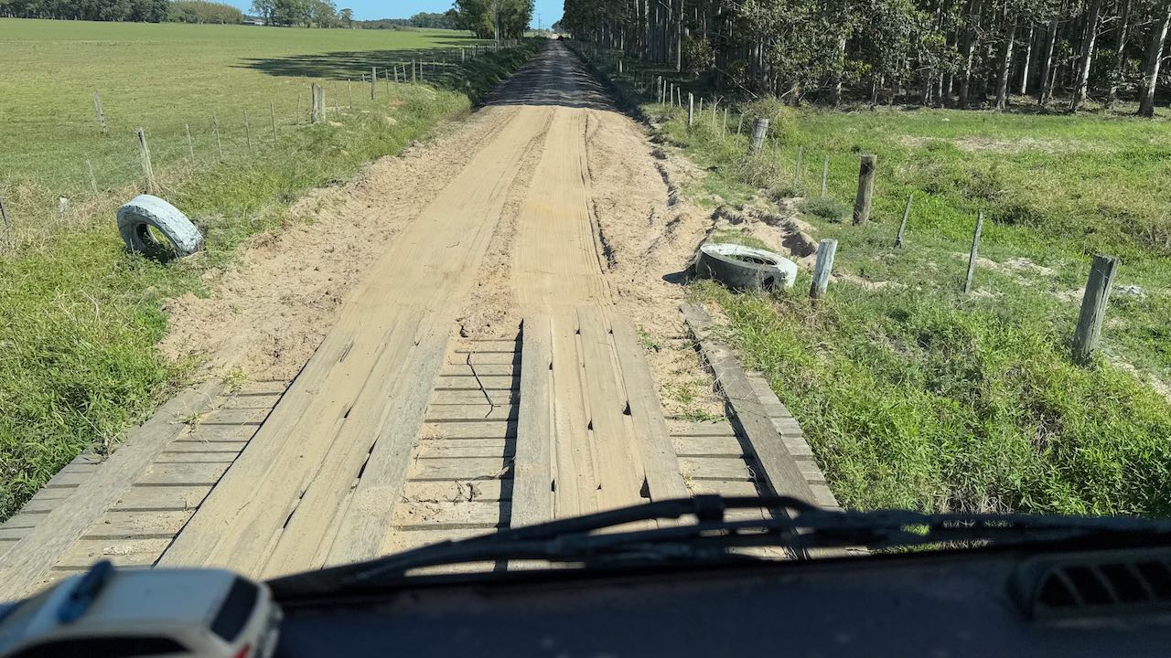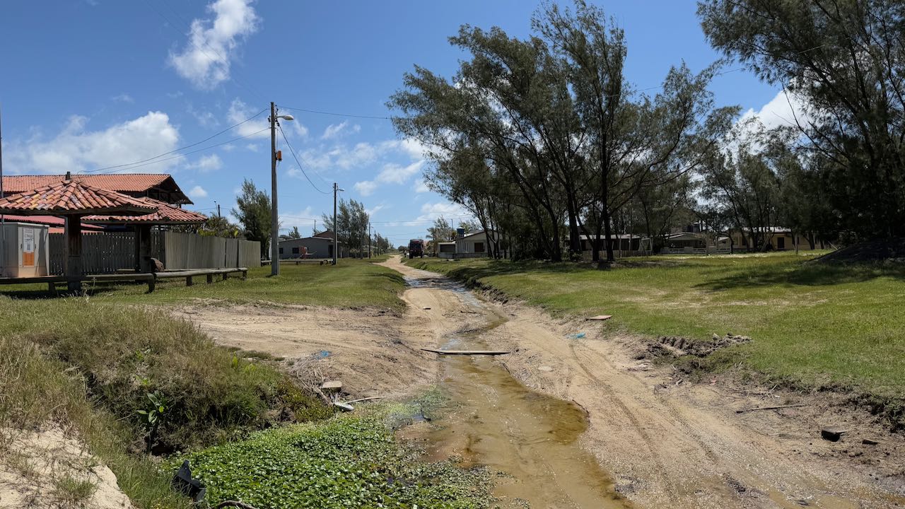 10 Kilometer sind es bis nach São Simão, über nassen Sand, von Wasserläufen durchzogen. Mal ist der Untergrund völlig aufgeweicht, mal okay, mal geht es über ein winziges Brücklein, das uns tapfer hinüberträgt