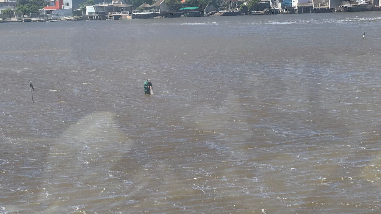 Das Netz wird wieder eingeholt, scharf beobachtet von einem Reiher, der auch was abbekommt.