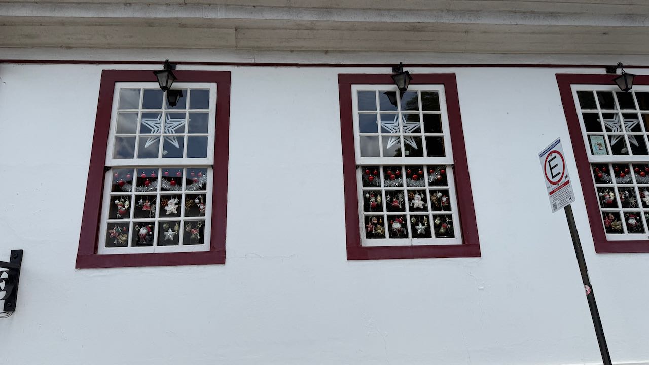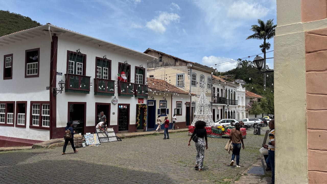 Wieder schnaufen wir bergauf, durch weihnachtlich geschmückte Gassen, zur Praça Tiradentes