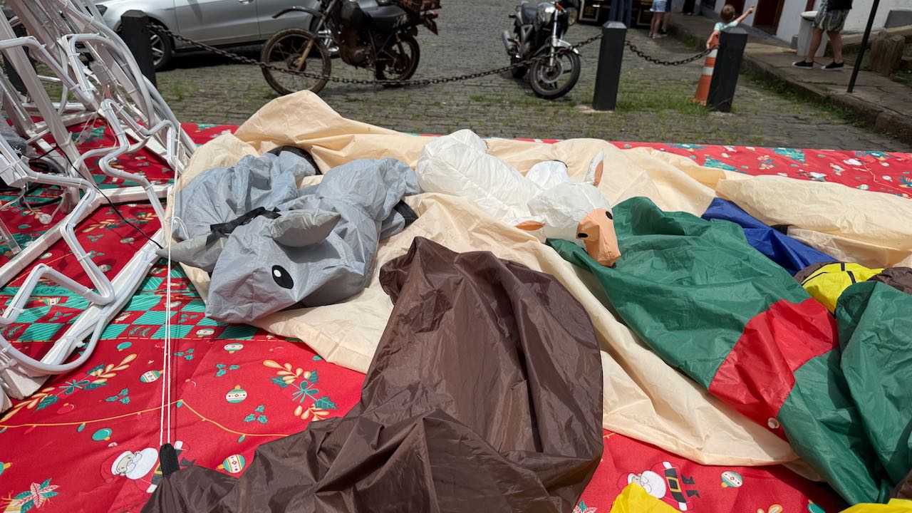 An der Praça Monsenhor Castilho Barbilo wird eine Weihnachtskrippe aufgebaut.