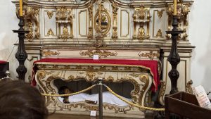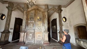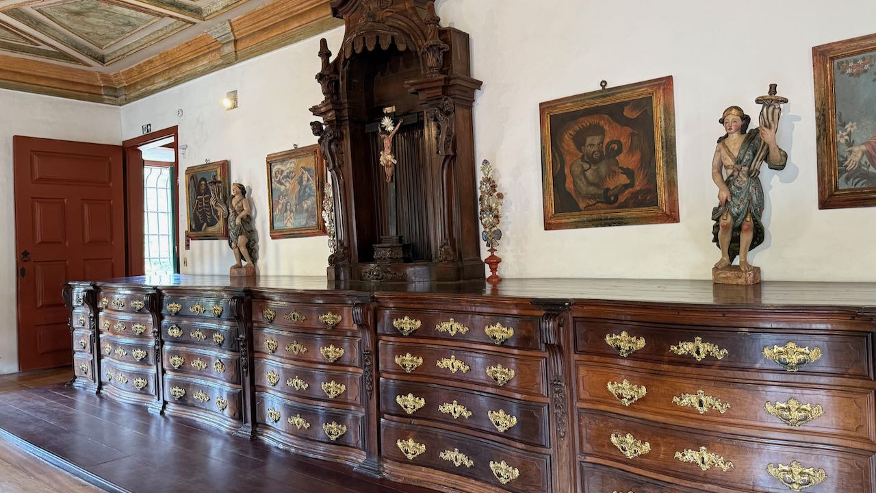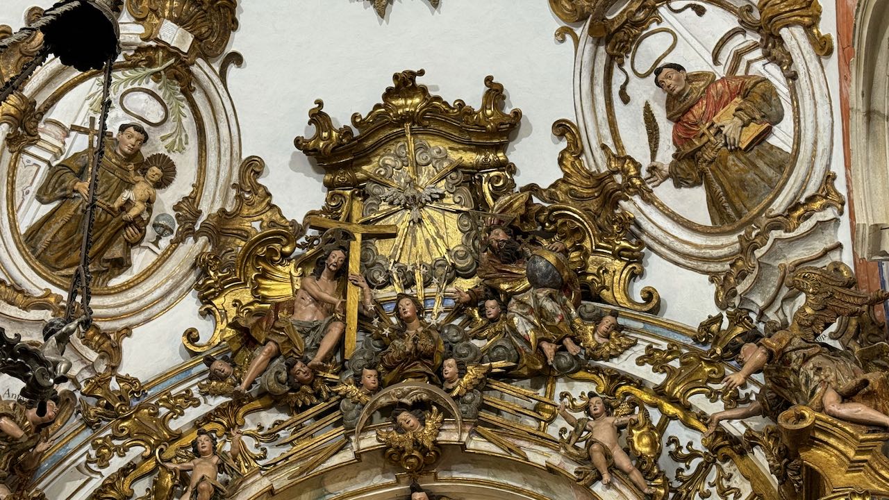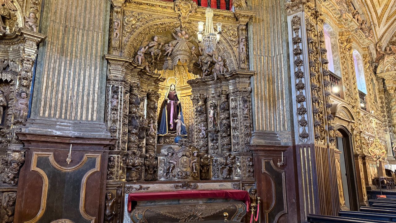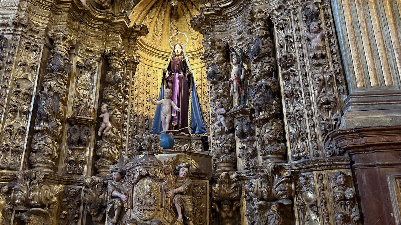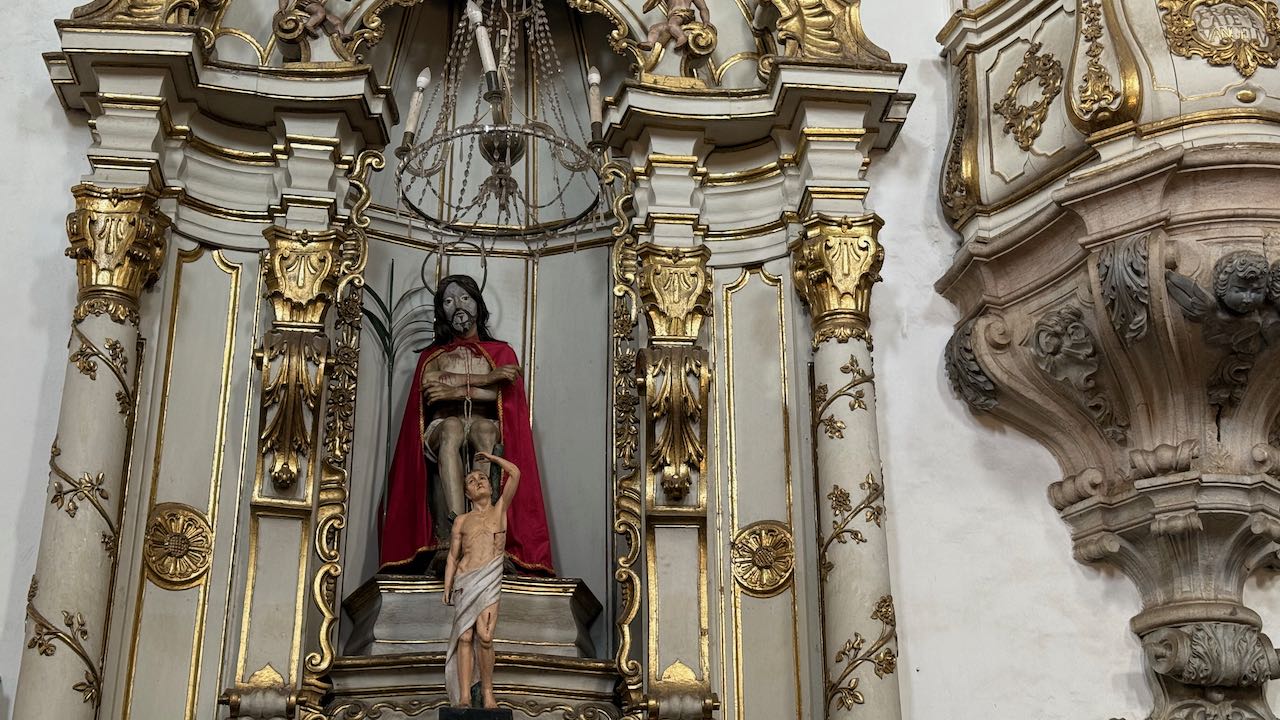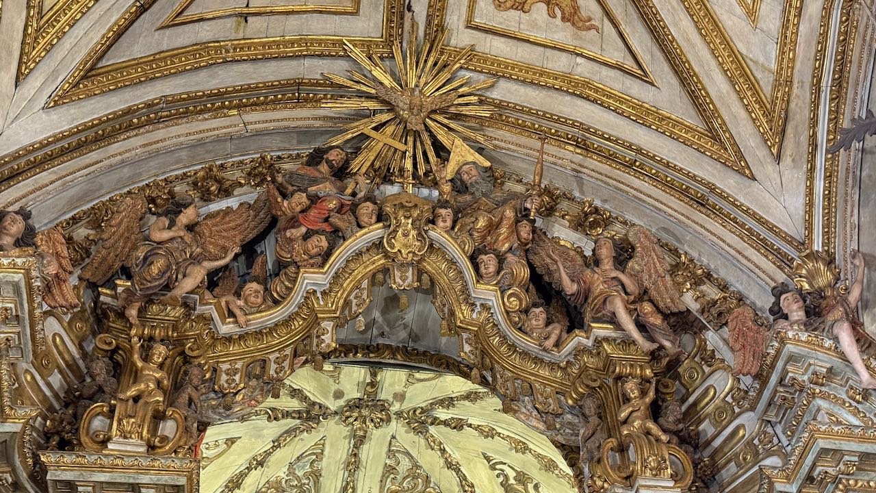 Hinter der Tür Glanz und Glimmer, Schnörkel und Dekoration auf jedem Millimeter. Brasilianischer Barock in Reinform.