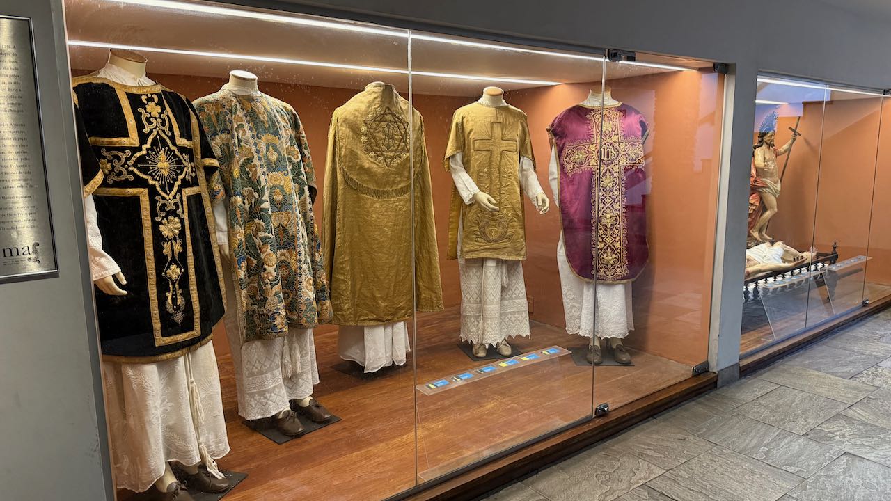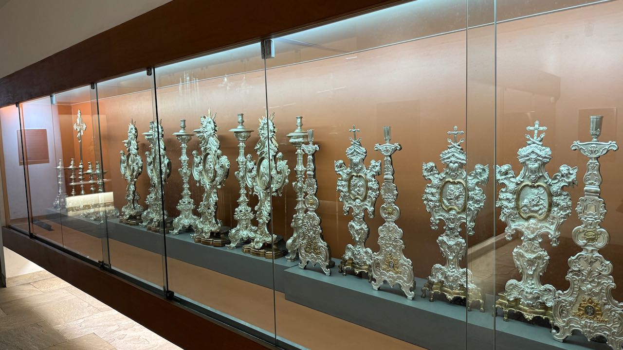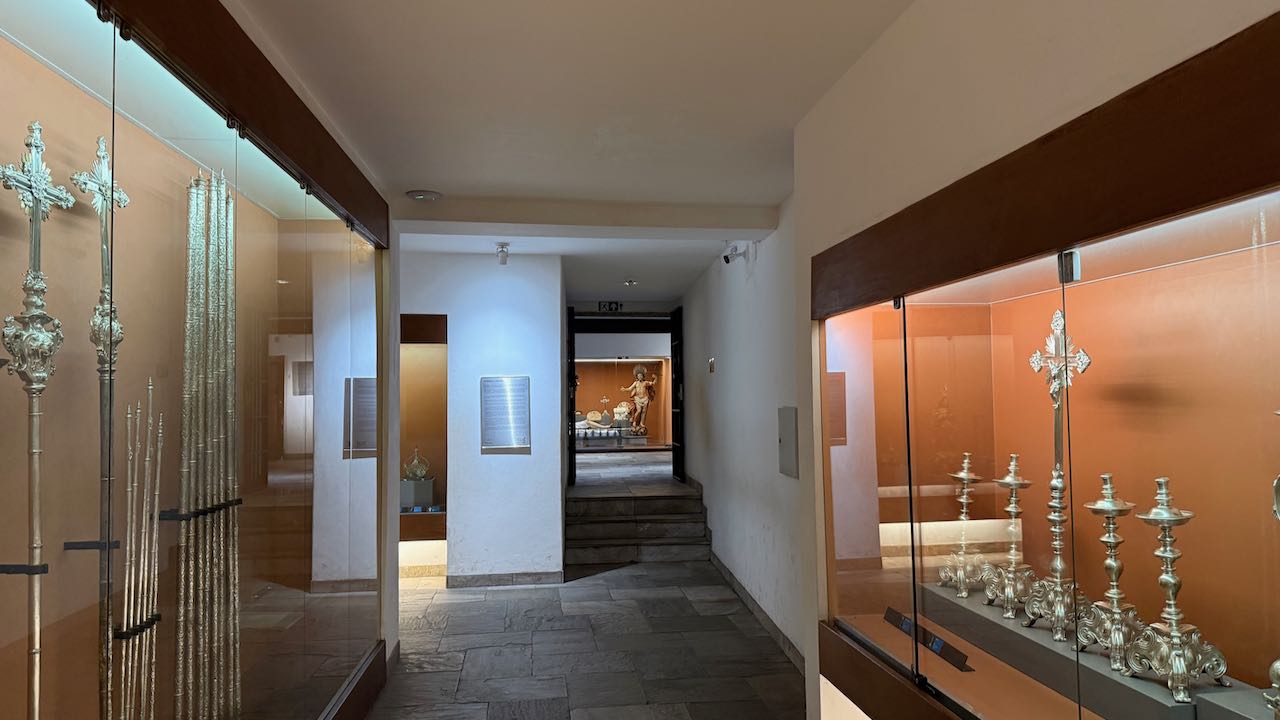 Ein paar Treppen hinunter befindet sich im Gewölbe unter der Kirche ein Museum für sakrale Kunst.