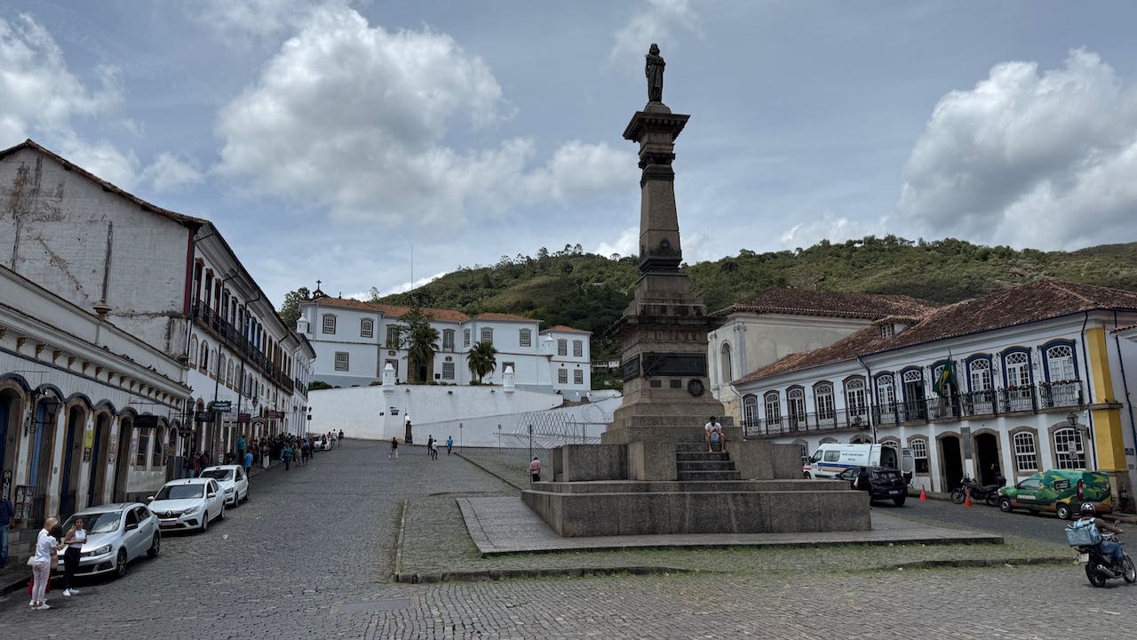 Auf der Praça steht das Denkmal für Tiradentes, dem „Zahnzieher“, der berühmte Freiheitskämpfer des 18.Jhds. Ein hochgebildeter Mann, ausgebildet in der Zahnmedizin, der sich nicht abfinden wollte mit dem hohen Goldzins, den Portugal verlangte.