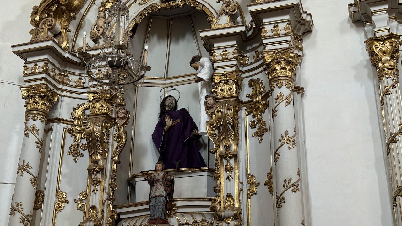 In den Nischen können wir die berühmten Schnitzfiguren von Aleijandinho näher betrachten.