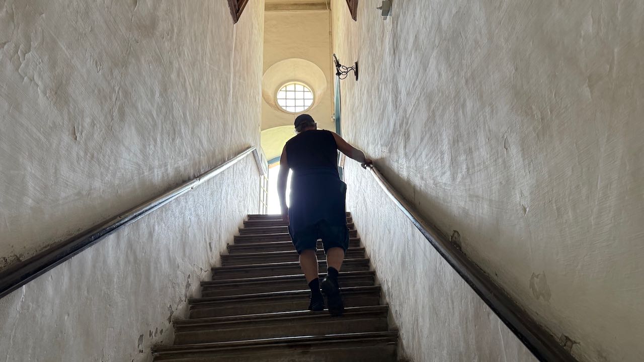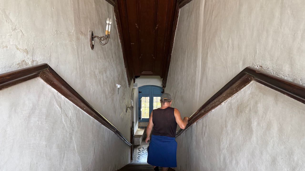 Jetzt die steile Treppe hinauf in den ersten Stock