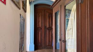 Im Vorraum steht eine hohe Tür in der Mitte, vielleicht wird sie nur für besondere Anlässe geöffnet?
