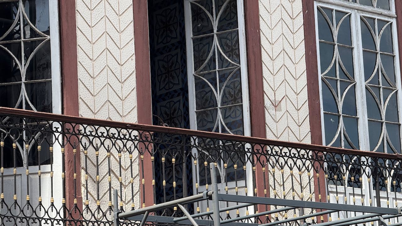 Schau´mal! Was für schöne Fenster! Und innen wunderschön ausgemalte Räume, die Zimmertüren genauso prächtig wie die Fenster, was für ein wunderschönes Haus!