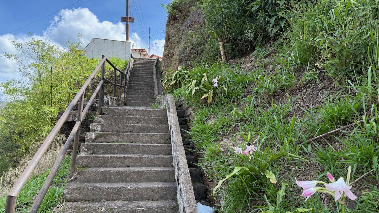 Nach 80 Metern Aufstieg machen wir einen kurze Pause bei der Igreja Sao Jose, leider wegen Baufälligkeit geschlossen.