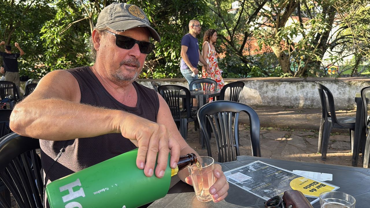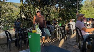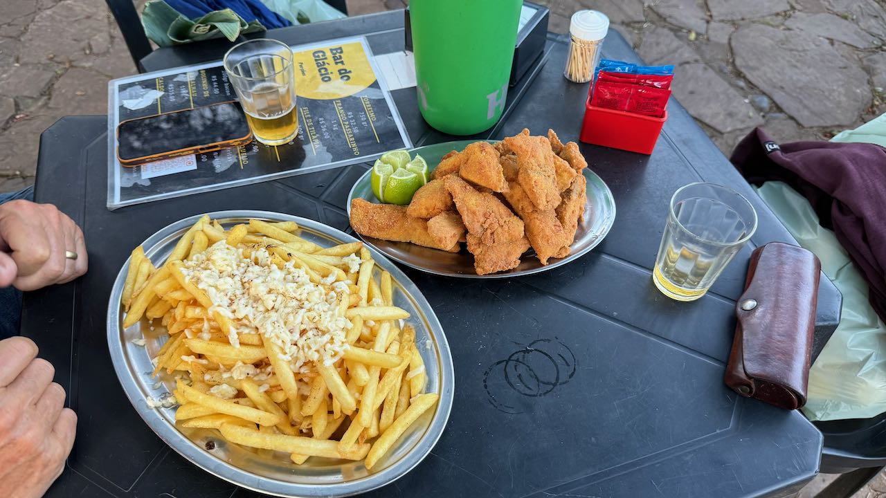 Sieht das nicht einladend aus, der Platz vor der Bar do Glacio? Wir schlendern rüber und bestellen eine kühle Flasche Eisenbahn.