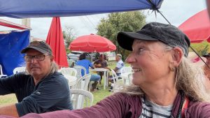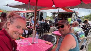 Bestens gelaunt radeln wir zurück, halten kurz bei der VW-Bus-Bar, aber sie haben nur IPA Bier <- das schmeckt so grauslich – oder Bier mit Rotwein gemixt. Schon bekommen wir einen Becher hingehalten zum probieren…..