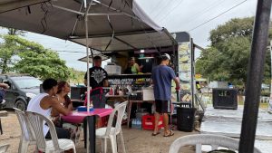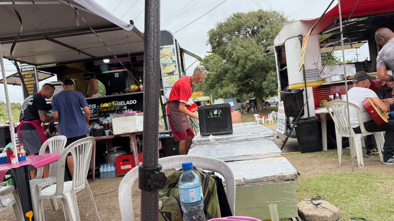 Viele Leute kommen zum essen hierher. Manche bringen auch nur große Tüten voll Fisch zum frittieren und nehmen dann alles mit.