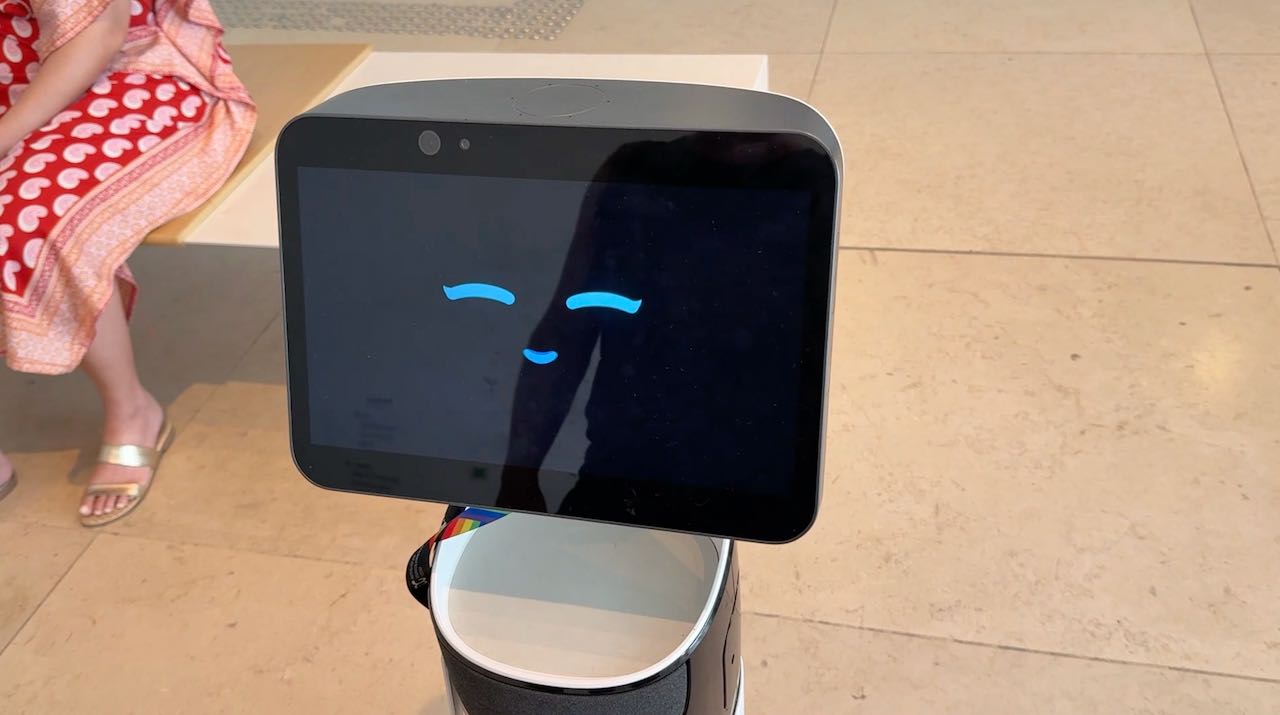 Dieser freundliche kleine Kerl mit Mitarbeiterausweis bietet seine Hilfe zur Orientierung an. Wir lassen uns von ihm den Weg zeigen…