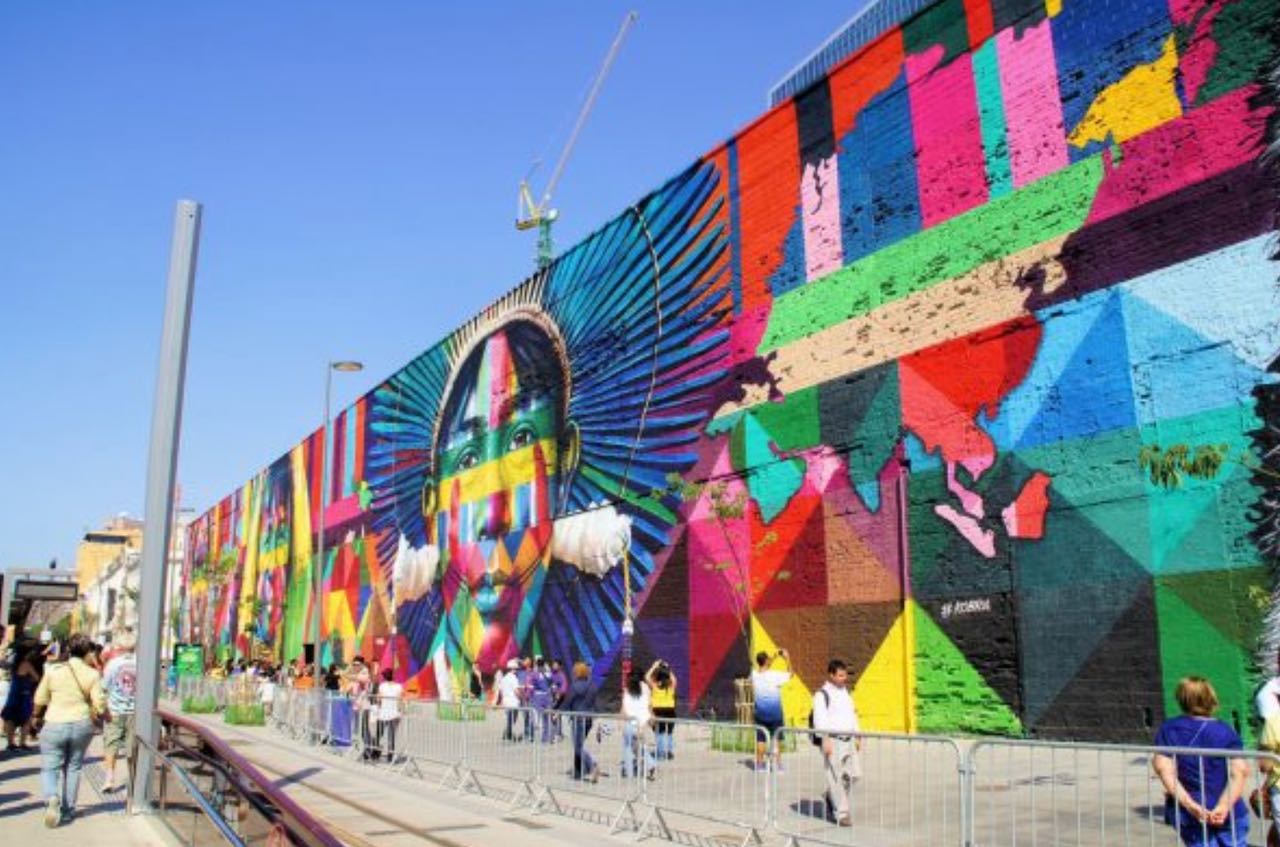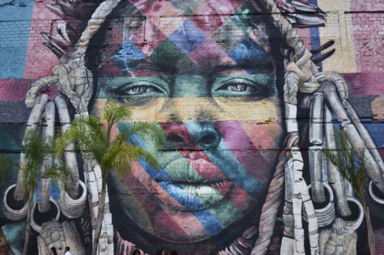 „Todos somos um“ – „wir sind alle eins“ lautet der Titel des Murals. Von Eduardo Kobra und einem großen Team in harter Fleißarbeit pünktlich zu den olympischen Spielen 2016 fertiggestellt.