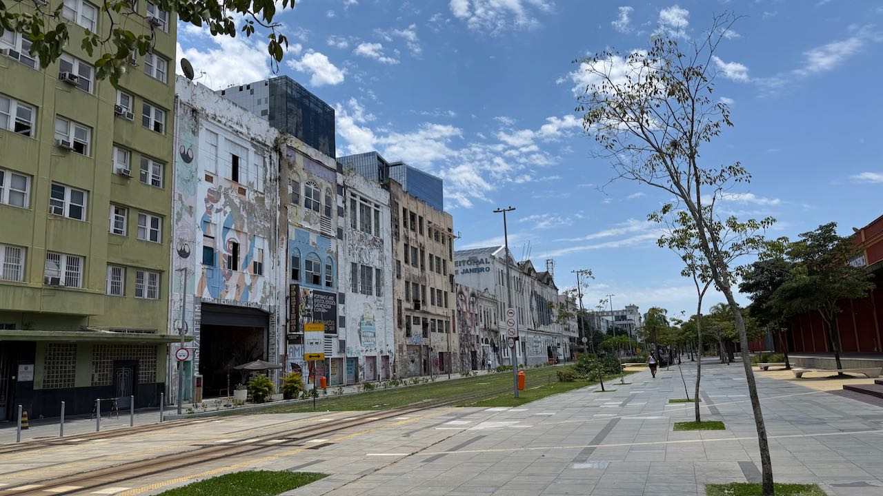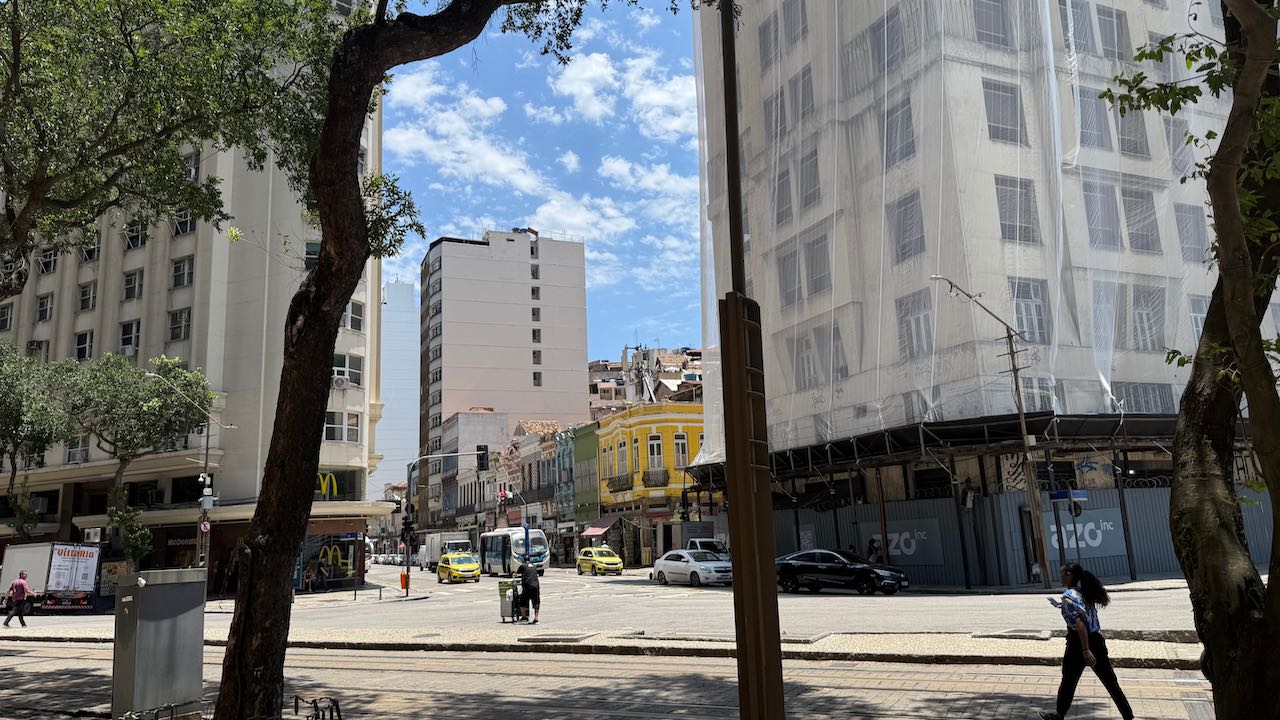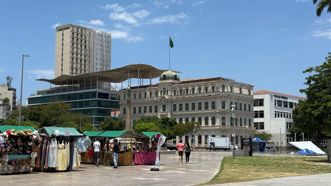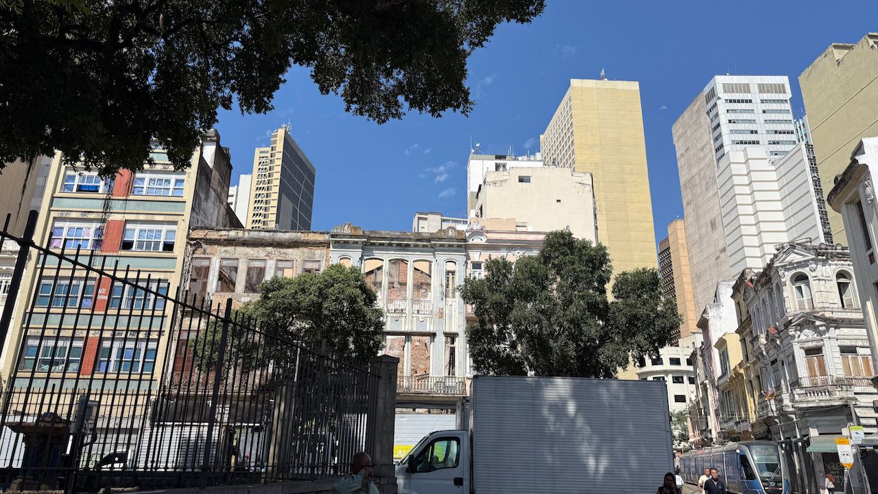 An der Praça Mauà, im alten Hafengelände, steigen wir aus. Schwere, geradlinige Bauten umgeben den Platz.