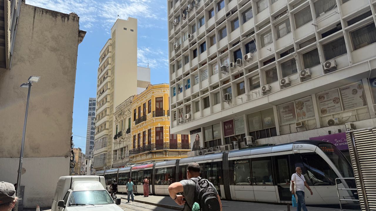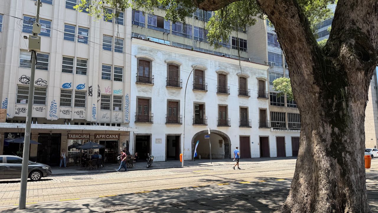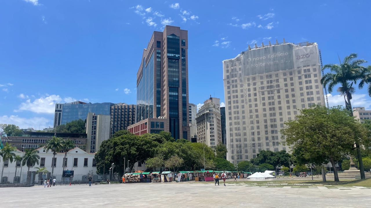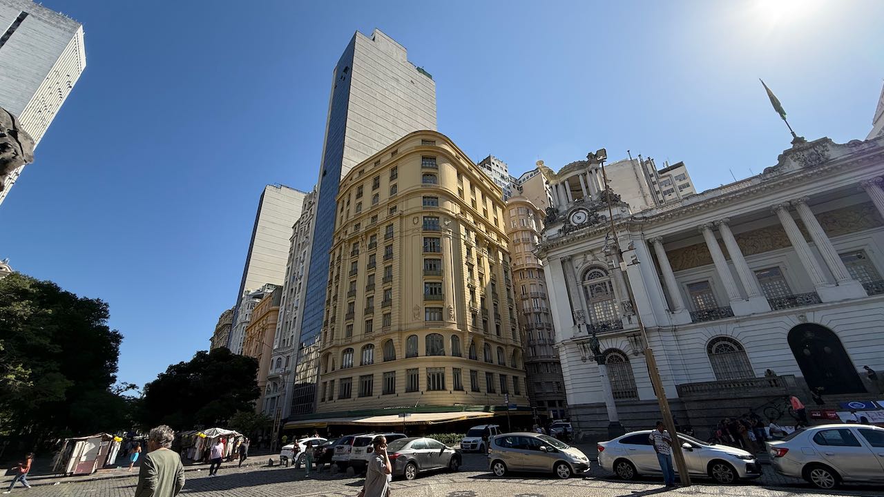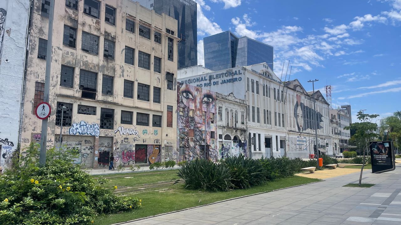 An der Praça Mauà, im alten Hafengelände, steigen wir aus. Schwere, geradlinige Bauten umgeben den Platz.