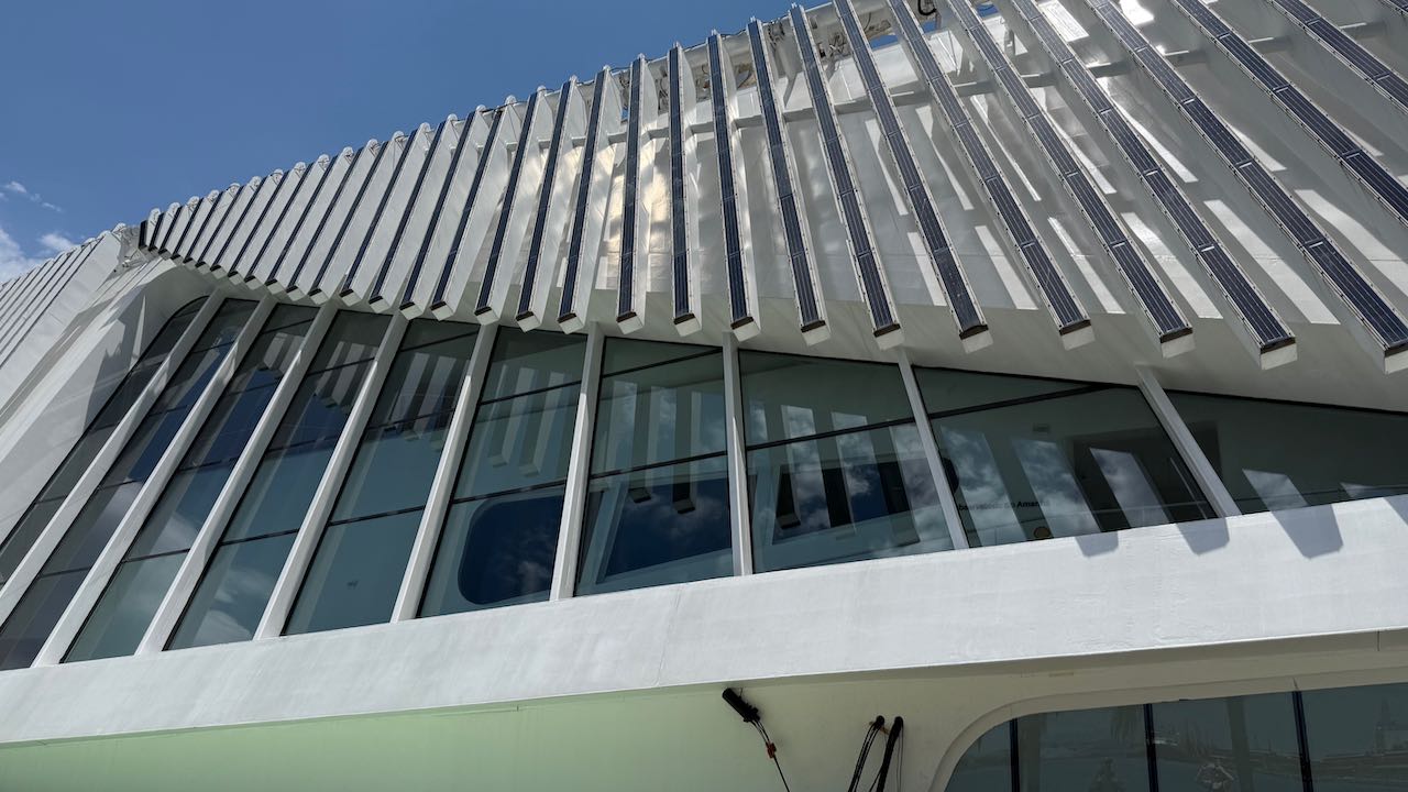 2017 wurde das Gebäude zum „Grünsten Bauwerk“ der Welt gekürt. Jede Strebe ist ein bewegliches Solarpanel.