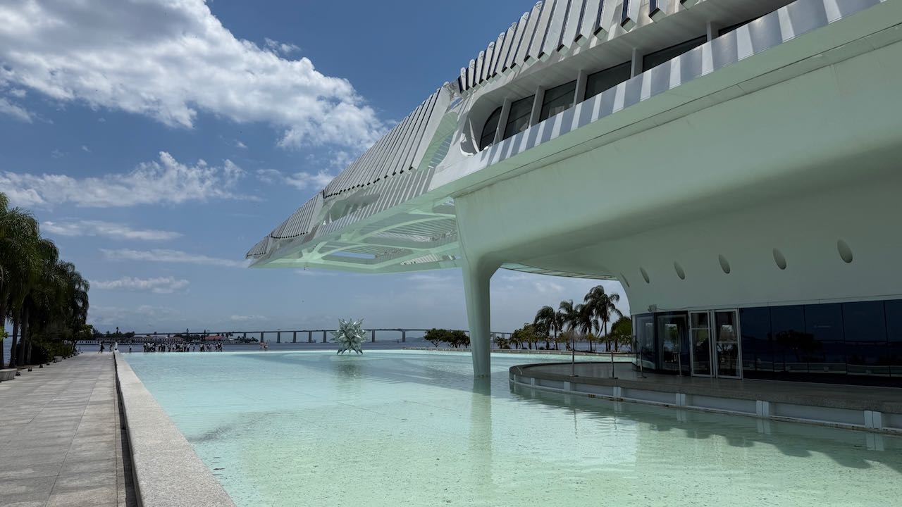 Allen gegenüber, auf´s Wasser hinaus gebaut, das Museu do Amanhã, das Museum für Morgen, entworfen von Santiago Calatrava