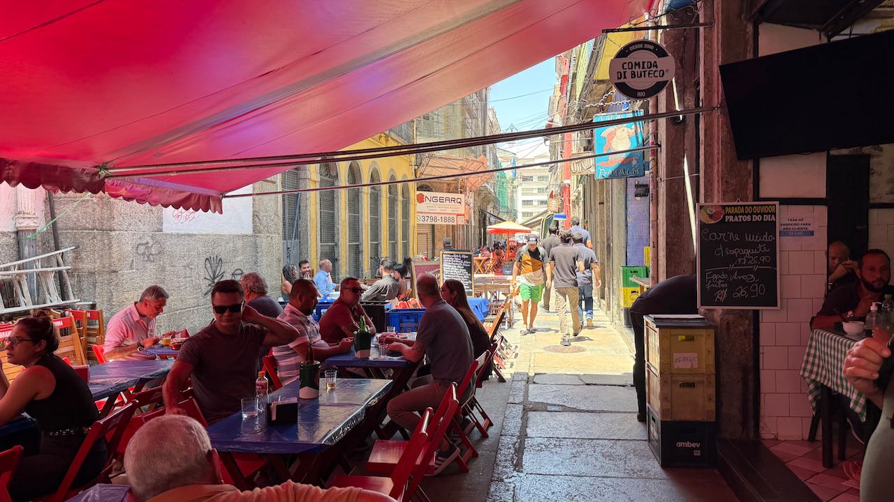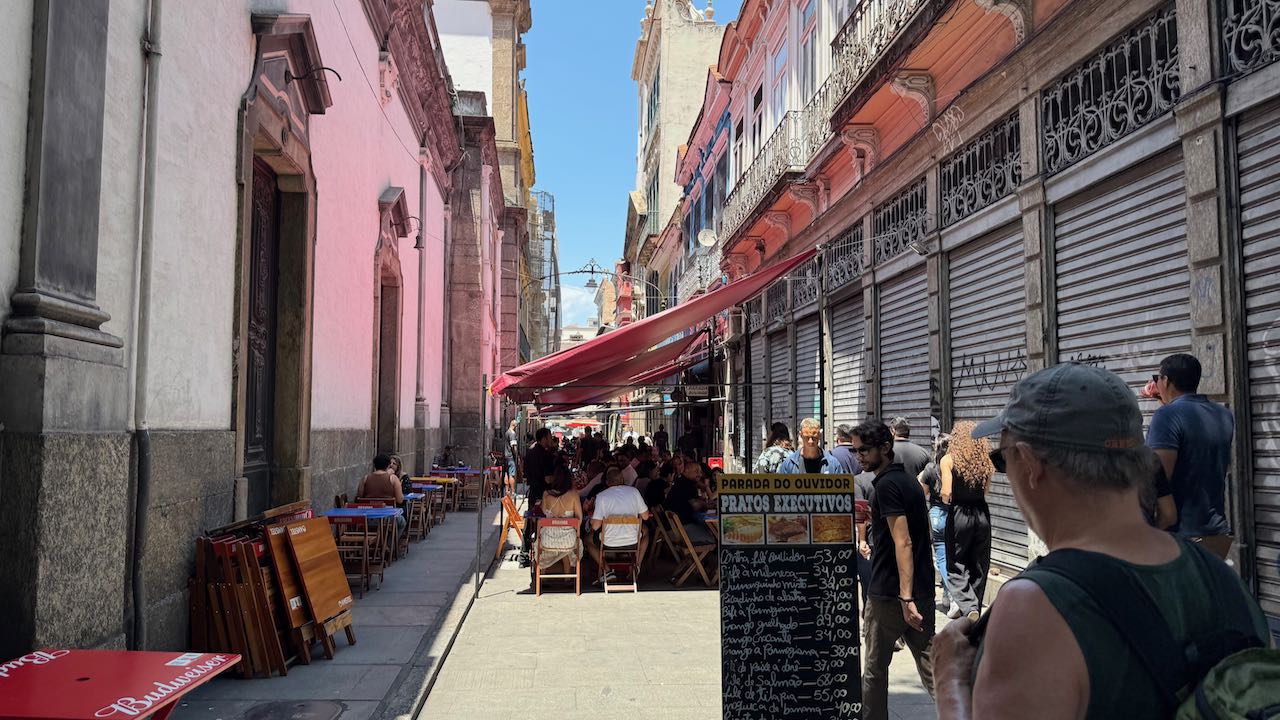 Aber dahinter liegen wunderschöne Altstadtgassen mit vielen Cafés und Restaurants. Stühle und Tische auf den Strassen, ein Ausgehviertel vom Feinsten. Überall wird getafelt, die Cariocas haben Mittagspause. Musik, lautes Geplauder, feines Essen – ein sprudelndes Viertel voller Genuss.