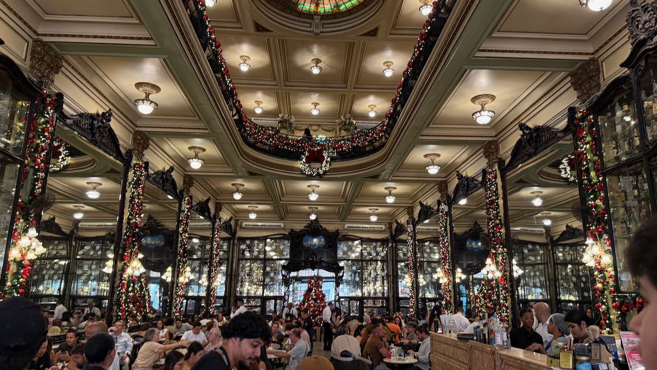 1894 von portugiesischen Einwanderern als Süßwarengeschäft eröffnet und 1918 komplett im Jugendstil renoviert. Schon von außen eine Augenweide.